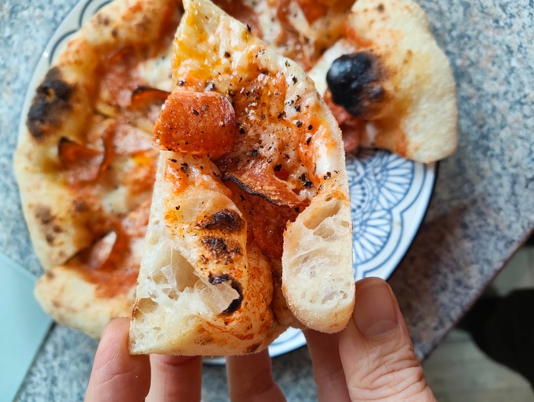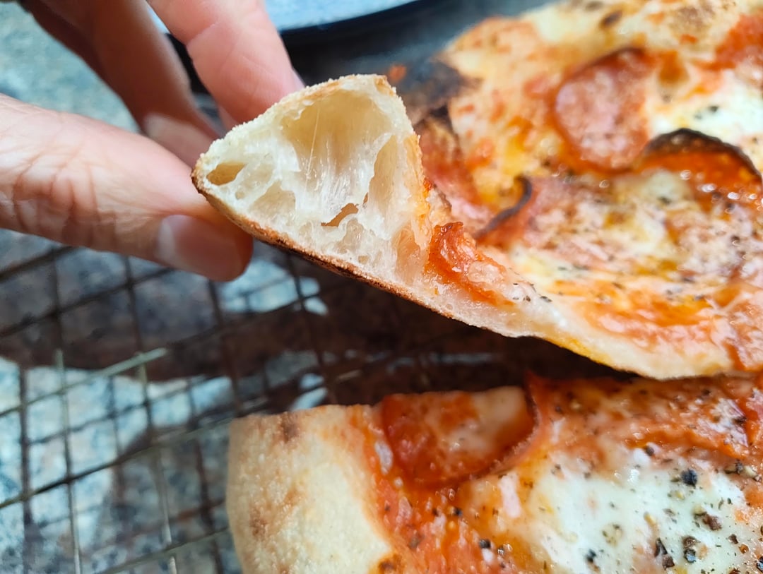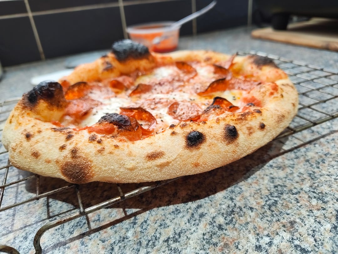 For this batch, I used Ooni flour (available here in the UK) and made three dough balls at 65% hydration. I froze two, and this beauty was baked from one of those frozen and then properly thawed balls. The difference with the new, active yeast was absolutely night and day!