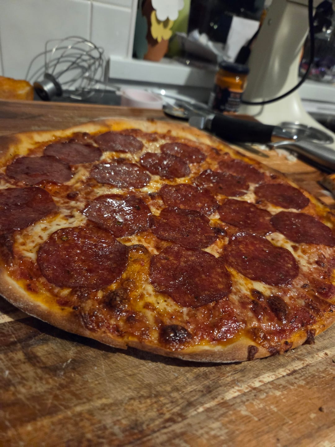 [Homemade] Pepperoni Pizza by Ch3ks 17 Comments Angry-dolphin 6 hours ago God damn Efficient-Maximum651 6 hours ago Gotta work on that edge, but nice bake! BlueMang0es 6 hours ago I would frame that first photo and hang it in my foyer. Fuzzy_Welcome8348 6 hours ago Looks amazing 🤩 Hpnunz 5 hours ago Looks amazing! The_Spaniard1876 5 hours ago that looks delicious. send it to your friends and then tell them it’s all gone when they ask for a slice. empress_jae 4 hours ago That looks really tasty! crzysnk18 4 hours ago A thing of beauty ricirici08 4 hours ago finally a not burnt pizza. well done Thunarvin 4 hours ago I can almost feel the crunch on that pepperoni from here. CobRaDomE 4 hours ago So now I’m hungry blanketshapes 3 hours ago i an good for half of that absolutely any time.doesnt matter if im skydiving, fleeing the police, in a shark cage, at the dentist, not hungry, etc Coinflipper_21 3 hours ago I like using the “”sandwich size” pepperoni. Ok_Wolf_4939 3 hours ago Did you make the dough? Needs more pecorino or mozzarella, truthtakest1me 2 hours ago Gimme!!! Denise77777 2 hours ago Love everything about this DraicoM01 2 hours ago Perfection 👏🔥