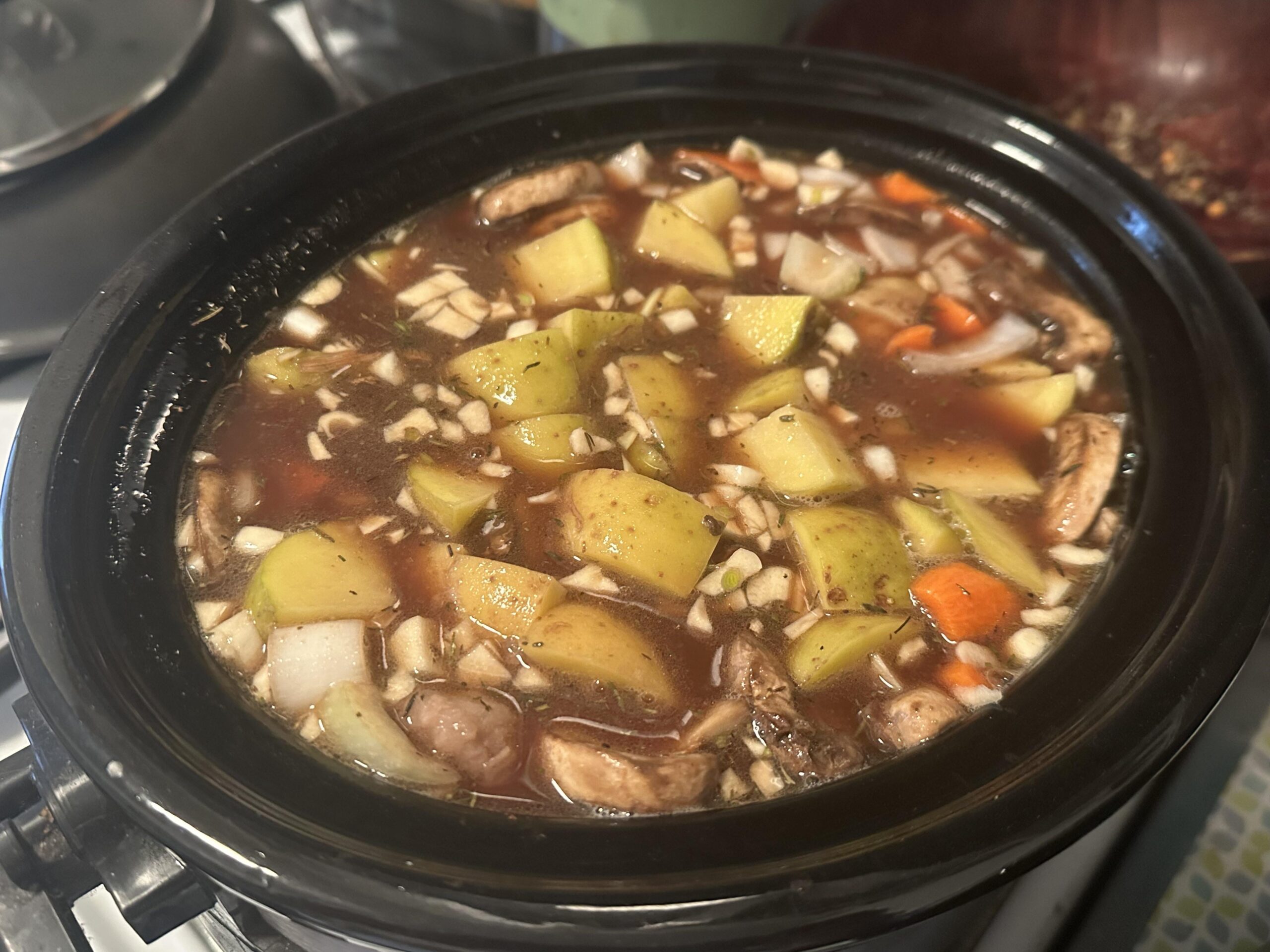 I know it’s overfilled, but it’s stew that’s going all day, so it’ll be fiiiiiine.