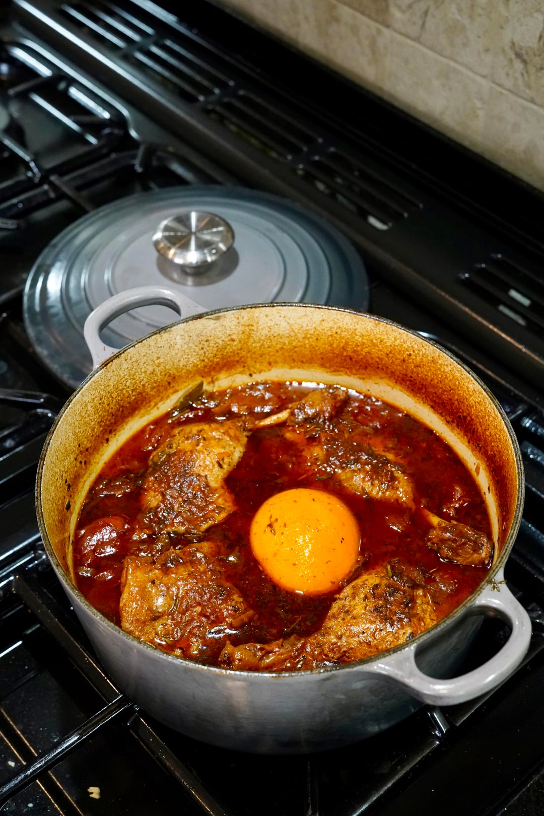 I made the dish pretty much to the recipe but added some vinegar at the end because I felt it needed some acidity, and grated on some chestnut for service.