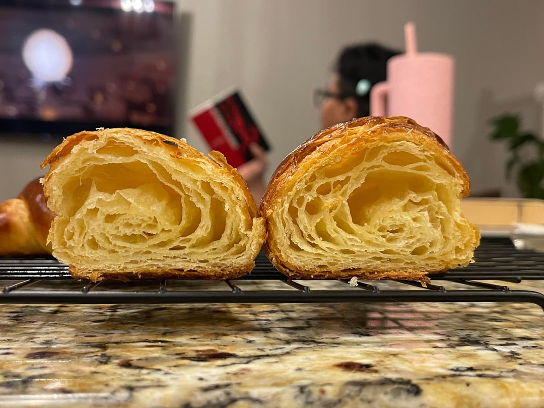 I finally had the nuts to try making croissants at home! I was so nervous about getting the lamination right. While they aren’t perfect I’m proud of how they turned out:))Any and all tips are appreciated🫶🏼