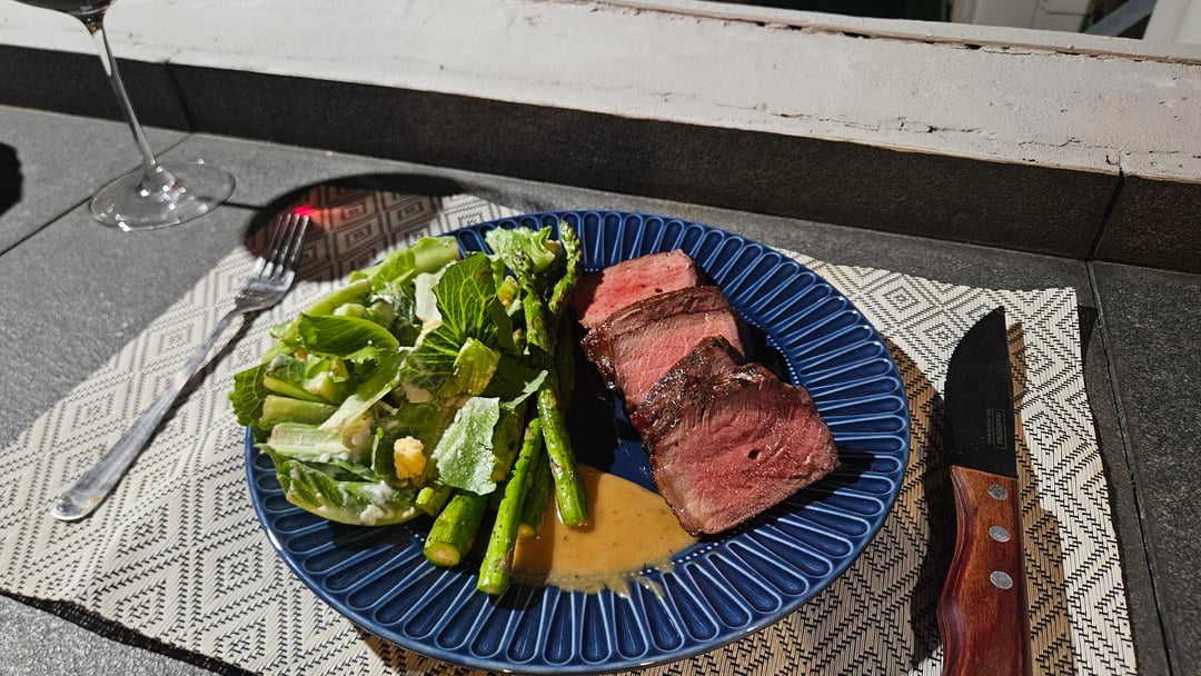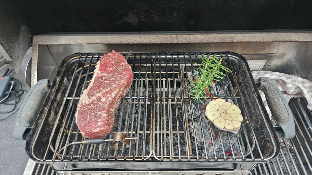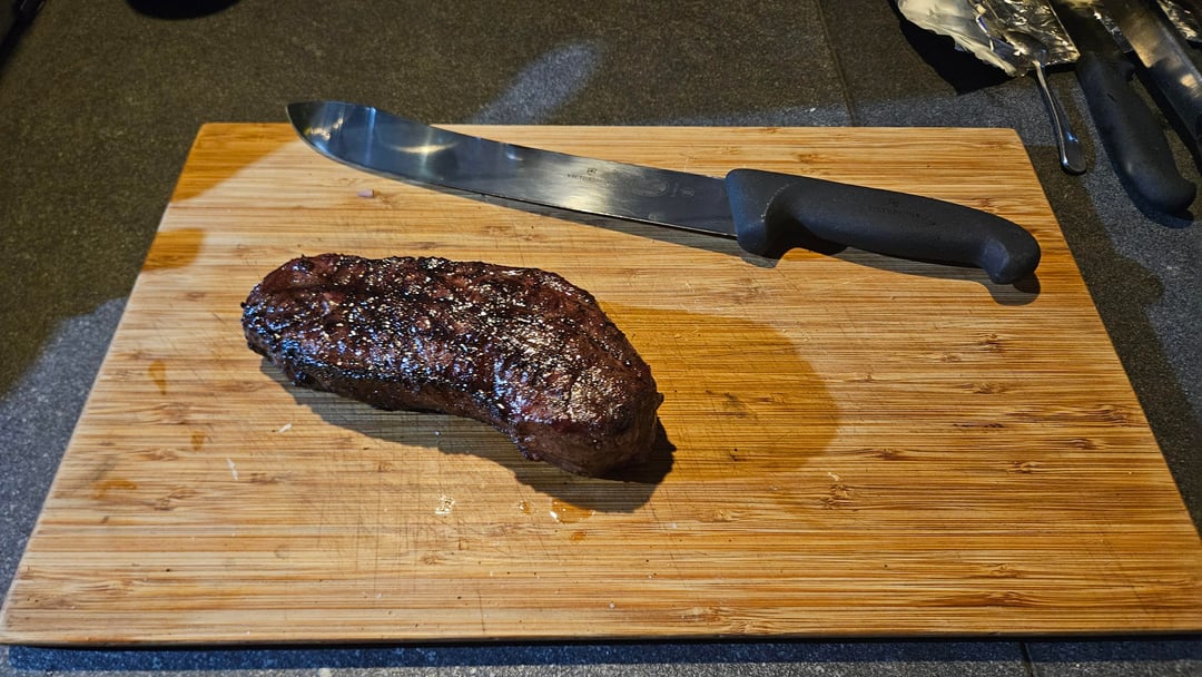 The wife was out tonight, and I found a nice NY strip in the freezer so thought I'd grill myself a nice steak for dinner on the Webber GA.