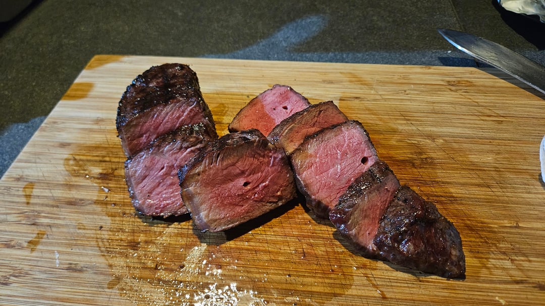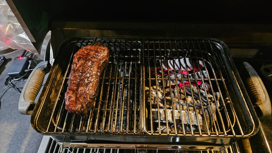 Cooked it for approximately 40min indirect, than a 2 minute sear on each side, flipping every 30 sec. Pretty happy with the results.