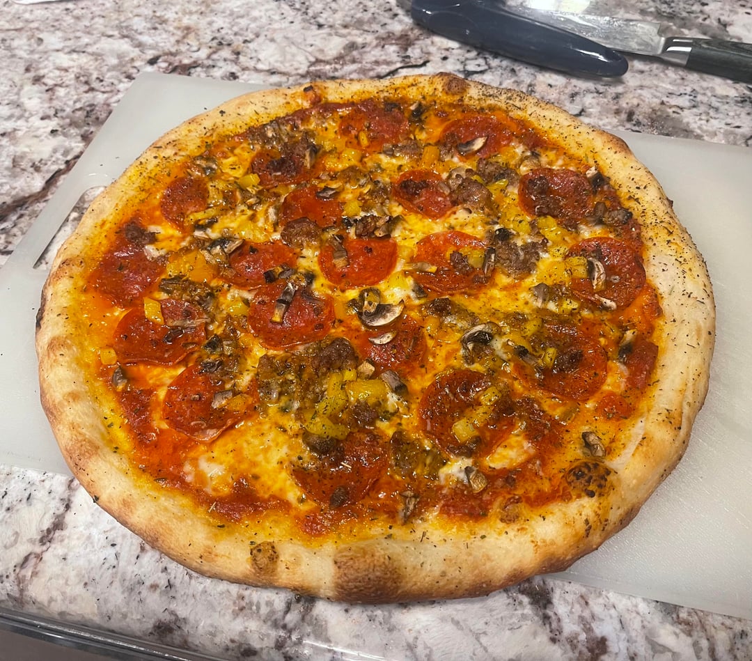 The warden helped with last night's pizza and she got a kick out of it. Outer burners on high and burner under the stone set to low for a 45 minute preheat. We brushed the crust with olive oil to help brown it up. 11 minute cook time with spin half way through. I've been asking for a pizza oven but the wife says the Genesis does just fine.🤣🔥🍕