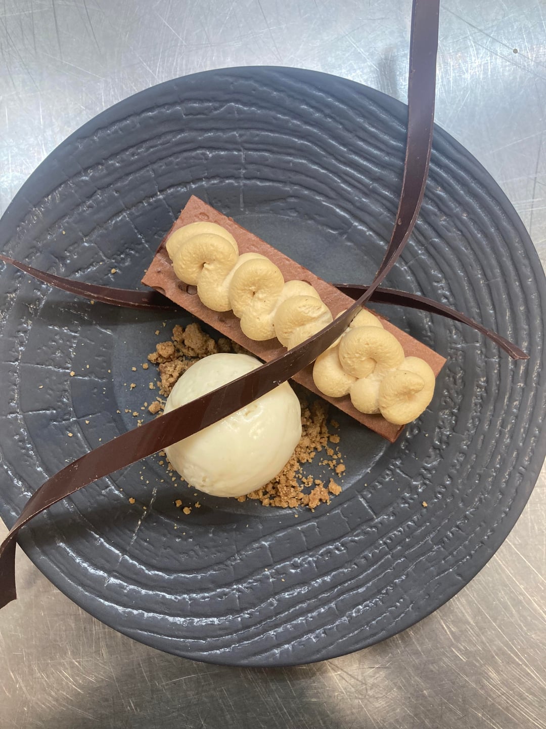 Wishbone6263 3 hours ago Dark chocolate pave/ salted caramel chantilly/ espresso crumble/ pear sorbetMore of my desserts here: [Instagram](https://www.instagram.com/johnrileypastry?igsh=M2lwOHV0aGlqcGUx&utm_source=qr)