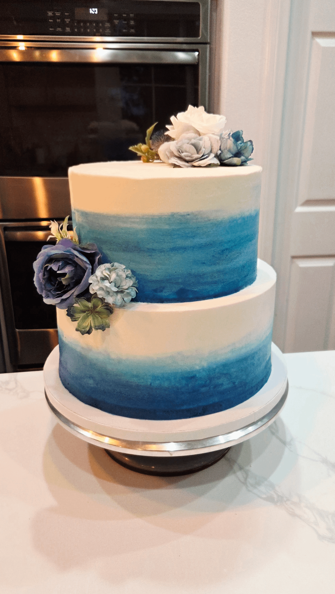 Made this for someone who just finished treatment for colorectal cancer (hence the blue theme). Its red velvet cake with cream cheese frosting on the inside. I did buttercream on the exterior for stability and cleaner lines.