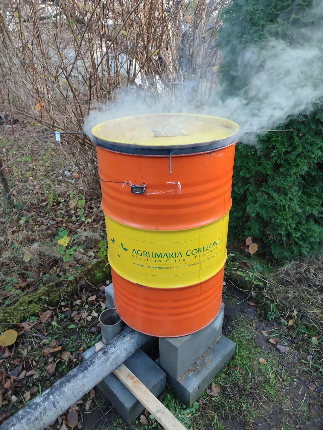 For clarity, my smoker is different from what I usually see in posts from the US, a classic eastern european scrape metal setup :D. It is a clay brick sort of fireplace connected by a 5 inch metal pipe to a bottom of barrel, which acts as the smoking chamber. I start by lighting a fire to warm up and stabilize the whole system temperature, and when it chokes down, I throw some fruitwood (in my case cherry) onto red-hot charcoal and regulate the airflow to maintain the right temperature.