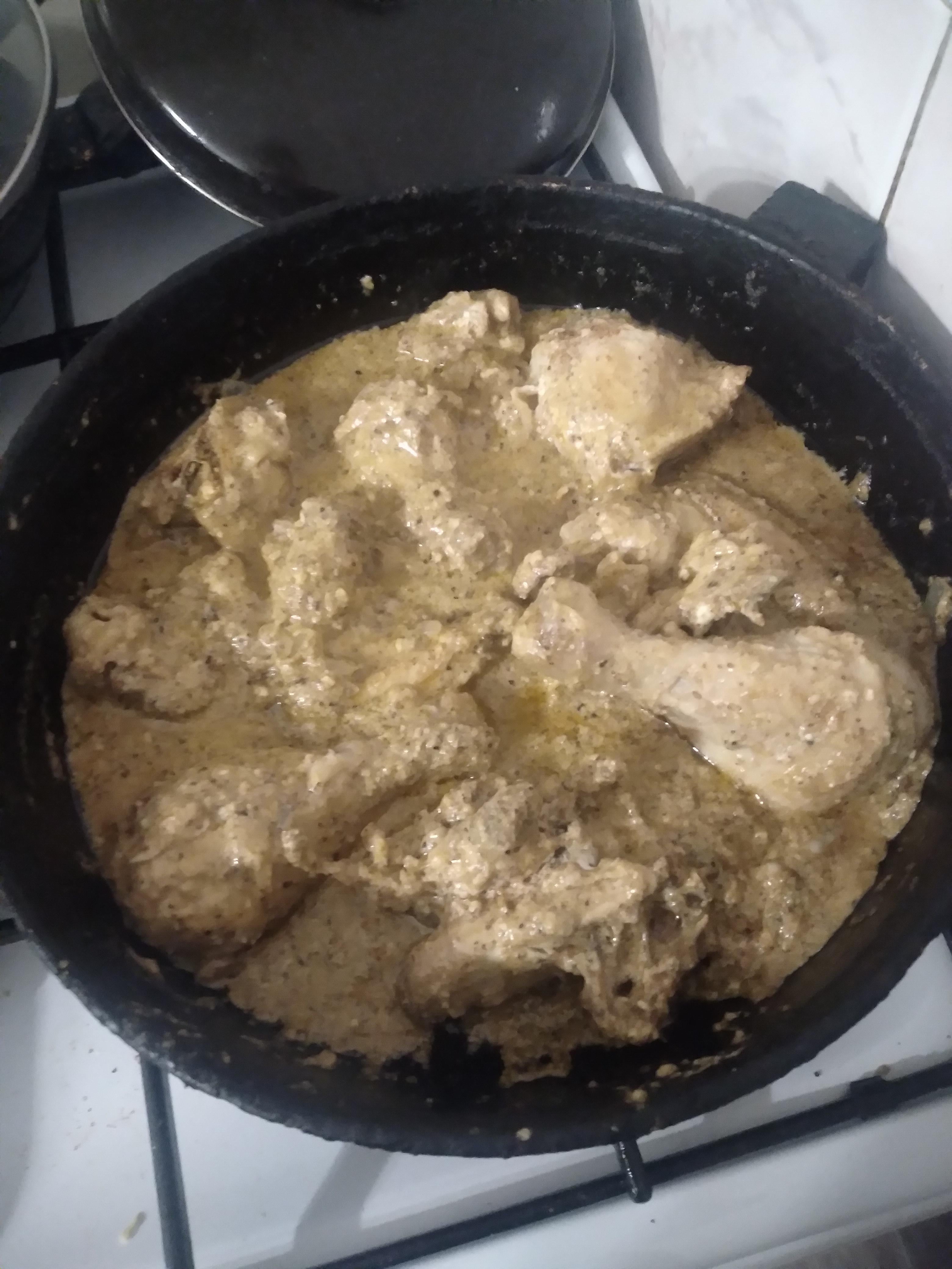 Me and dad made some exquisitely shitty slop while drunk on 3 liters of beer. Though it is not apparent, we added a shitton of chili sauce and sour cream. Also added some chicken broth as well cuz recipe (which we maimed) demanded chicken broth as foundation for the sauce