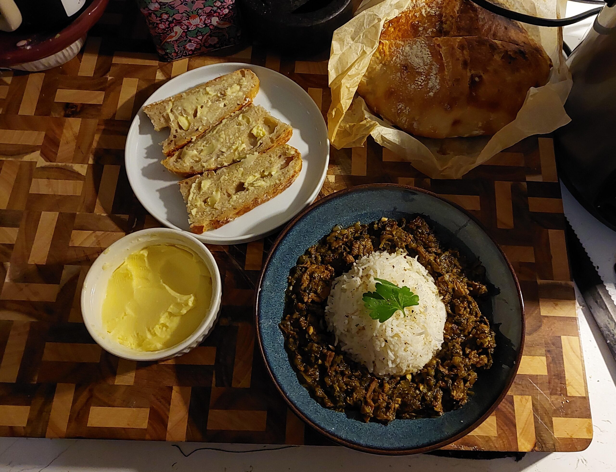 I served it with basmati rice, plus my partner’s homemade sourdough and cultured butter on the side.