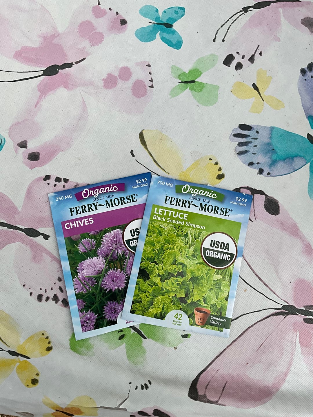 First off, the soil is way too low. The edges of the bucket will be blocking light. Second, those are horrible choices for a bucket. You could grow like maybe one head of lettuce in there. One. Not several and also chives. As the plants grow they’ll smother each other out. I can’t tell if that bucket is inside or on a porch, but if it’s inside, they’re unlikely to even sprout.