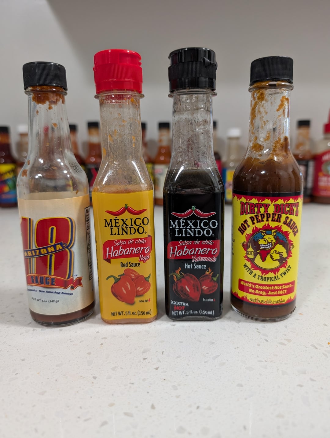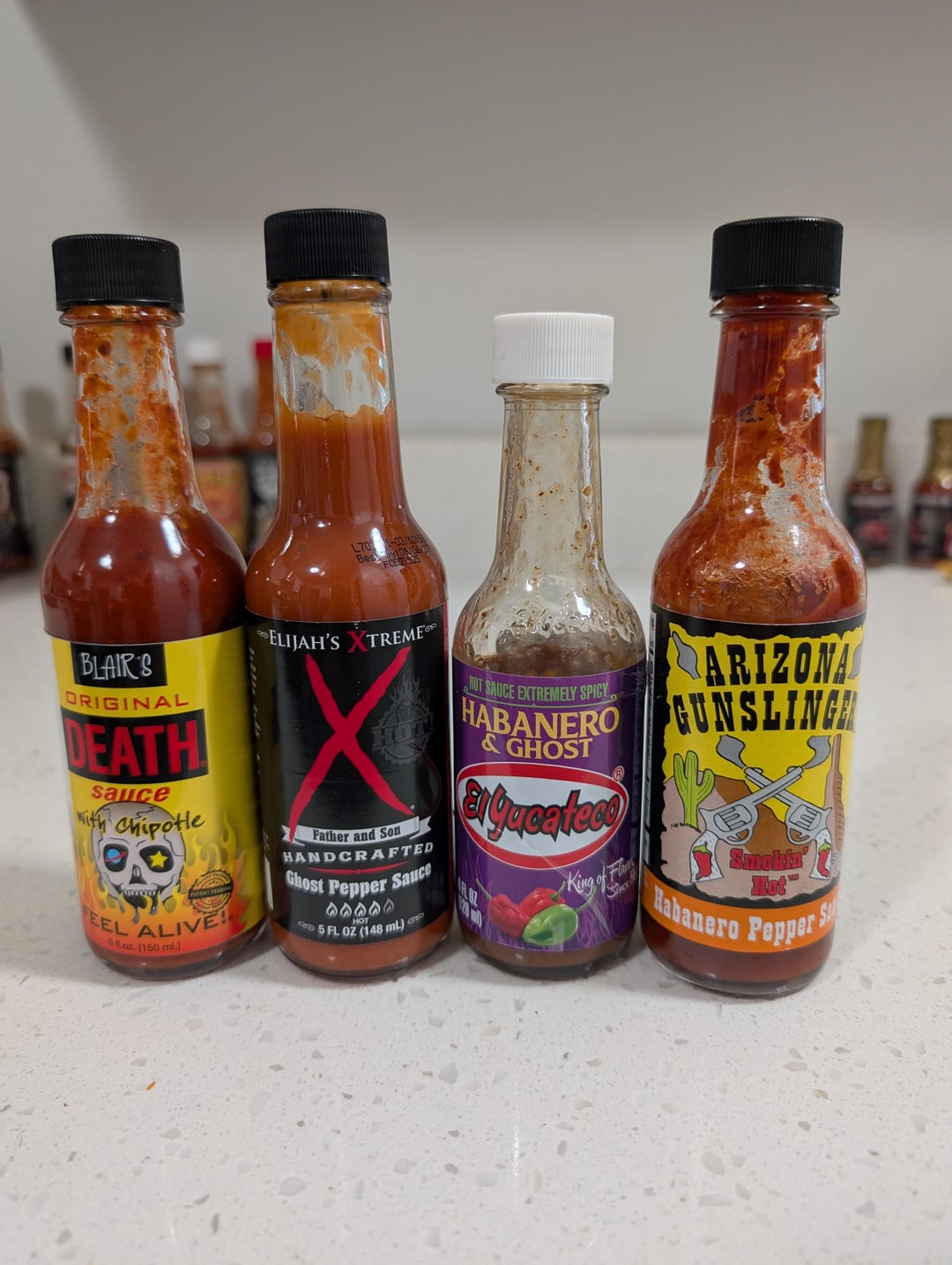 Arizona Gunslinger I have always thought was a gimmick and I slept on it for over 40 years. I finally gave it a try a few months ago, and wow was I surprised. This is a spicy sauce, great consistency, versatile for many dishes, and packing the heat level. I was really torn about putting it into my first group, especially with the score that I give it, and it boiled down to if it had enough flavor to carry the heat. The flavor could be a bit stronger, maybe simply adding salt or garlic power to it would make it a stronger contender, but being that it is also available at the grocery store, I suggest picking it up. Actual ingredients: Habanero, Jalapeno, Vinegar and Salt, that is it. 8.5/10