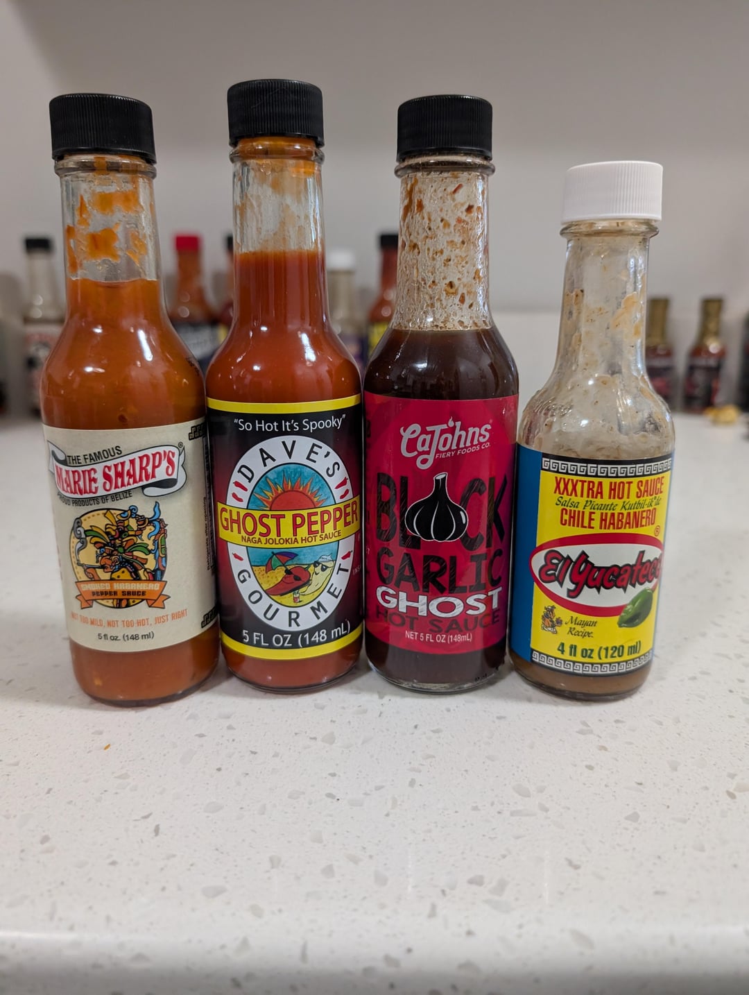 El Yucateco is one you can find at the store, no need for mail order or specialty shops, and this specific blend, Habanero and Ghost is likely what I consider their best hot sauce over all. It has wonderful and complimentary flavor and delivers on the heat. It is best to not look at the ingredients. 8.5/10