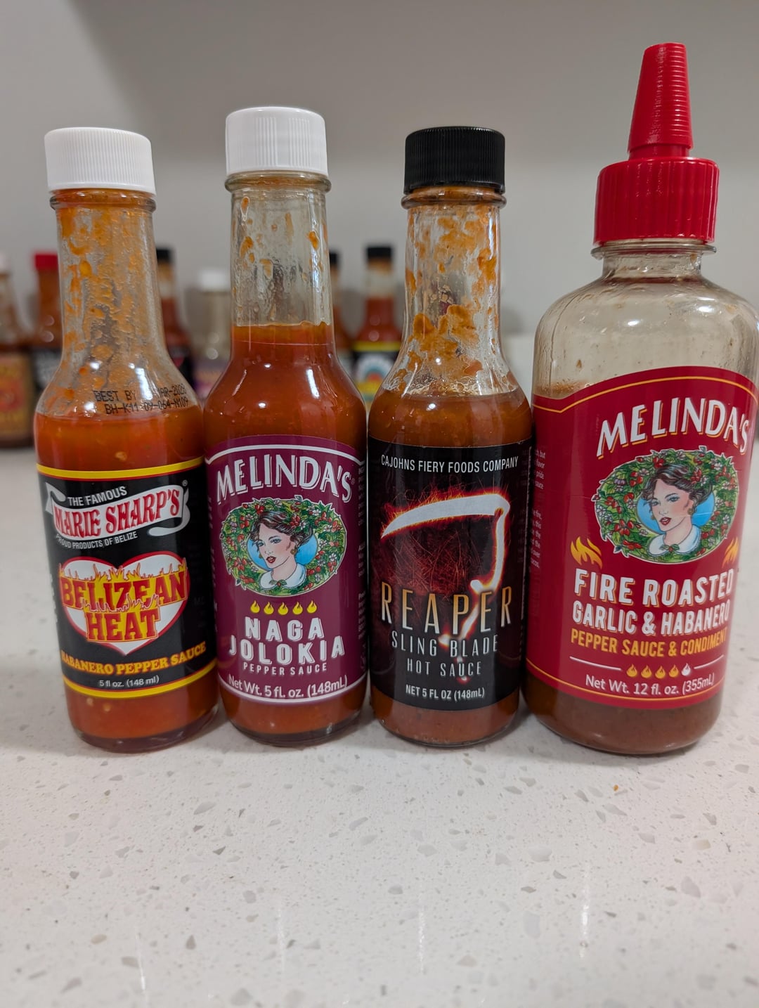 Over the last two weeks I have been working on reviews, to use the word loosely, of 20 different sauces I have about. While I do mention some ingredients, I have not typed up everything, just what I felt was present in the flavor.