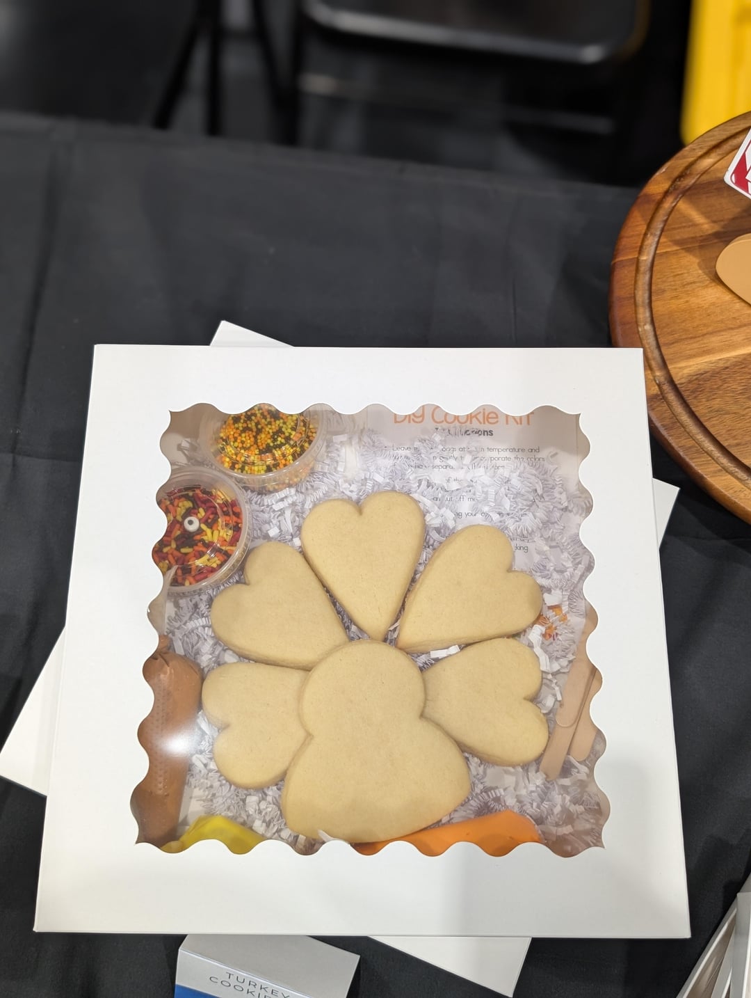 For your sugar cookies, I would recommend finding a way to display them so that they are more visible. When they are in the boxes, no one can see what you are offering unless they walk right by your table. If they are a few feet away, they won’t be able to see much. Display really does make a huge difference in drawing customers in.