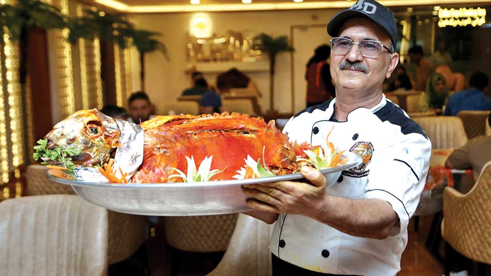 The menu begins with a variety of lamb dishes, lamb being the prime ingredient of a Mediterranean cuisine. There are Lamb Mandi, Lamb Madfoon, and Lamb Haneeth, to name a few. The poultry segment of the menu has a staggering 30 plus dishes – in many different preparations. Mandi, Mafdoon, Haneeth, Kabsa, Shawaya, Zurbian, Tannur, and Madhbee are the dominant features of this segment.