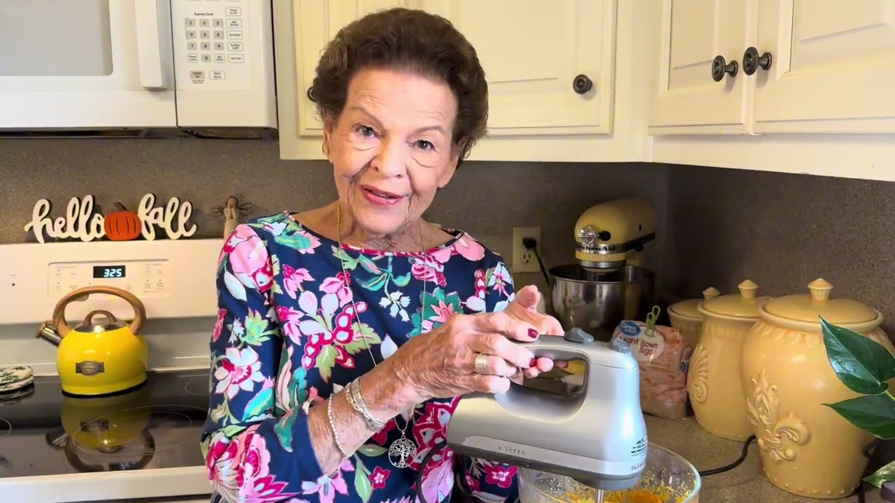 Welcome to Mimi’s Kitchen. Oh y’all, can you believe that it is November already? Oh my goodness. And you know what that means? Everybody is getting ready for their Thanksgiving feast. Oh, and what buffet would be complete without a sweet potato dish? Actually, we’re going to marry two recipes today. Right here in Mondays with Mim me are the two recipes. It’s actually page 71 and 72. And one is called sweet potato soule and one is called sweet potato casserole. Now, the reason I’m doing this is I like this sweet potato casserole recipe best because it has the evaporated milk and I just think that’s a little richer. And then the other one is because of the topping. This one doesn’t have a topping. This one does. So, we going to take the best of both of them, and that’s what we’re going to do. Now, the first thing that you’re going to need is three cups of of cooked sweet potatoes. Now, I’m going to tell you, it doesn’t matter. You can boil them, you can bake them, you can use them out of the can. I’m going to tell you, a few weeks ago, I made this for my family. Oh my gosh. And I used the canned sweet potatoes. They never knew the difference. We did not. Hey, that was that worked out good. So, today I baked mine. Yes. Because I’m making sweet potato other stuff and so it was just easier to bake all of them at one time. All right. Now, the first thing that we’re going to do here is to add to this 1/2 cup of packed brown sugar. Okay. Oh yeah. And then a half a stick of butter. Looks like they could have used a whole stick. Now we’re going to mix these until that butter is melted. So here we go. Okay. Now we’re going to add two beaten eggs. So Okay. Yeah, there’s one. Two. Okay, let’s beat them up good. All righty. Let’s pour that in there. Okay. All right. And then it says a half a teaspoon of salt. Well, let’s see here. That looks like a half a teaspoon to me. This one/2 cup of evaporated milk. And I use carnation, y’all. All right. Two teaspoon of vanilla. Okay. All right. And you use Watkins when you can find it. Oh, yeah. Y’all, it is so good. Oh. Oops. Look. The spirit kind of got wild there, y’all. That’s what I use. It It’s called Watkins and it’s called bacon vanilla. So, now we’re going to mix all of these ingredients until they get very well acquainted. And while they do, guess what, y’all? Our oven will set on 325. Okay, y’all. The instructions don’t say anything about greasing this pan, but you are for good measure. That’s right. One thing’s sure, it won’t hurt anything. This smells This smells so good. I think it’s that vanilla in there with that potato. Oh, yeah. Oh, y’all look at there. Ain’t that pretty? I want to tell you this recipe came from Ann Rash. That is McKenzie’s husband’s mother. Did you follow that? Yeah. And um when I was putting Mondays with Mimi together, um Ann entrusted me with this recipe and I just couldn’t wait to try it. And so, oh my goodness, it knocked my socks off, y’all. I mean, I just loved it. But in fact, I like it better than my own, but but it didn’t have a topping. So, and just like we had members of our families to marry, we’re going to marry these recipes. Okay. Now, let’s make our topping. And this is the other half of that butter. I wasn’t going to leave a tablespoon out. So, it calls for three tablespoons. Oh, yes. Yes. Yes. So, let’s Put that in there. All right. Now then, one cup of brown sugar. Whoa. Hello. All right. 13 cup. Of allpurpose flour. Okay. Oh, my topping calls for um a cup of pecans. Now, I have nut allergies in my family, and today I’m not going to use them, but you feel free to use them, you know, and so we’re going to It is good. It is good with Yes, it is. We’re going to mix this right here. Now, what we’re trying to accomplish here is kind of like a All right, let’s I’m just going to dump it all on there, KK. And then we’ll spread it. Oh, y’all, this always adds so much. Now, I say just dump it on there. Well, don’t dump it on there. Take it and just kind of spread it out evenly on top. Okay. Okay, y’all. Now, we’re going to put this in the oven. Start with 30 KKK. Okay. Okay. Since I’m marrying these two recipes, the first half I’m going to cook at 325 and then the second half I am going to cook at 350°. And that’s so that that topping will get done. So, 15 minutes on 325 and then 15 minutes on 350. Okay. Okay, y’all. I don’t know what got into me, but you know how I have trouble spreading that topping. Well, I don’t usually melt my butter. Good grief. I mean, you know, I leave it so that when you mix it together, it makes kind of like a crumble. And then you just sprinkle it all over the top. Y’all, that’s what was wrong with it. But I can promise you this. The results are going to be the same. It’ll be sweet and it’ll be crunchy. Okay, y’all. The magic sound. All right. Now, okay, y’all. All right. Now, you see this is not done soap. [Music] See how how that is right in there. Okay. Okay. So, we’re going to cook this for 10 more minutes. I think that’s what it’ll take. Okay. All right. There we go. We’ll see y’all in 10 minutes. The magic sound. Oh, look at that. [Music] Oh, that looks yummy. It smells yummy, too. Now, y’all, we will definitely have to let that cool. Yeah, y’all. That’s what you call piping hot. Yeah, it is. Okay. and uh rash that I got this recipe from. Her grandchildren call her Boot. Have you ever heard such? I think that’s the cutest thing. I think it is too. Let’s see here what Boo and Mimi have together. All right. I know. I’ve tasted I know it. It is so good, y’all. Let me describe this a little bit for you. Now, the topping that I put on it, it adds a little bit of crunch and oh, the sweetness. Oh, y’all, it is so good. But then the casserole itself. Yeah. You said it was creamy. Yes. Oh my goodness. So, creamy, crunchy. Oh, yea