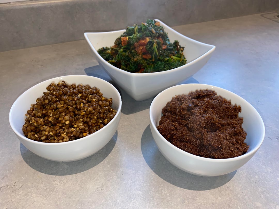 4. To serve, spread the teff on a serving plate. Top with the black lentils, kale, and any additional toppings you like, such as a dollop of yogurt or a squeeze of lemon juice.