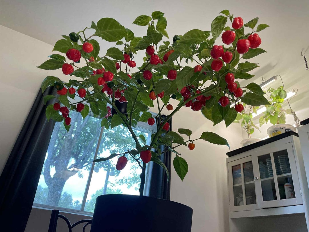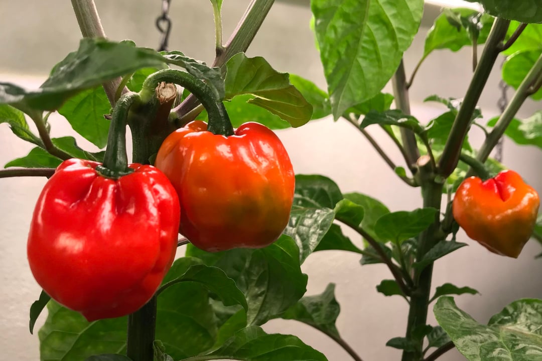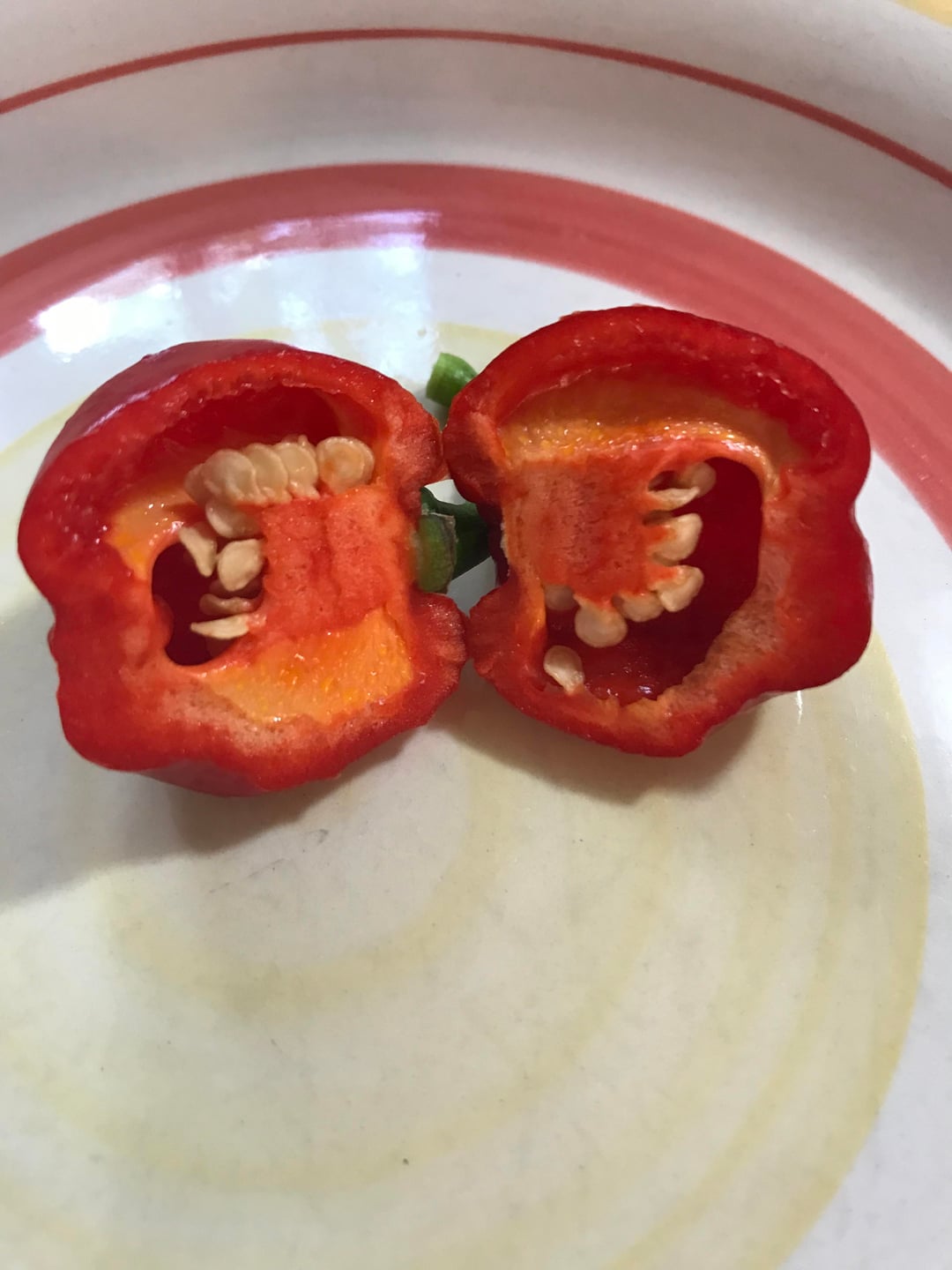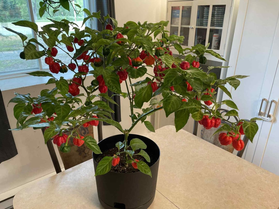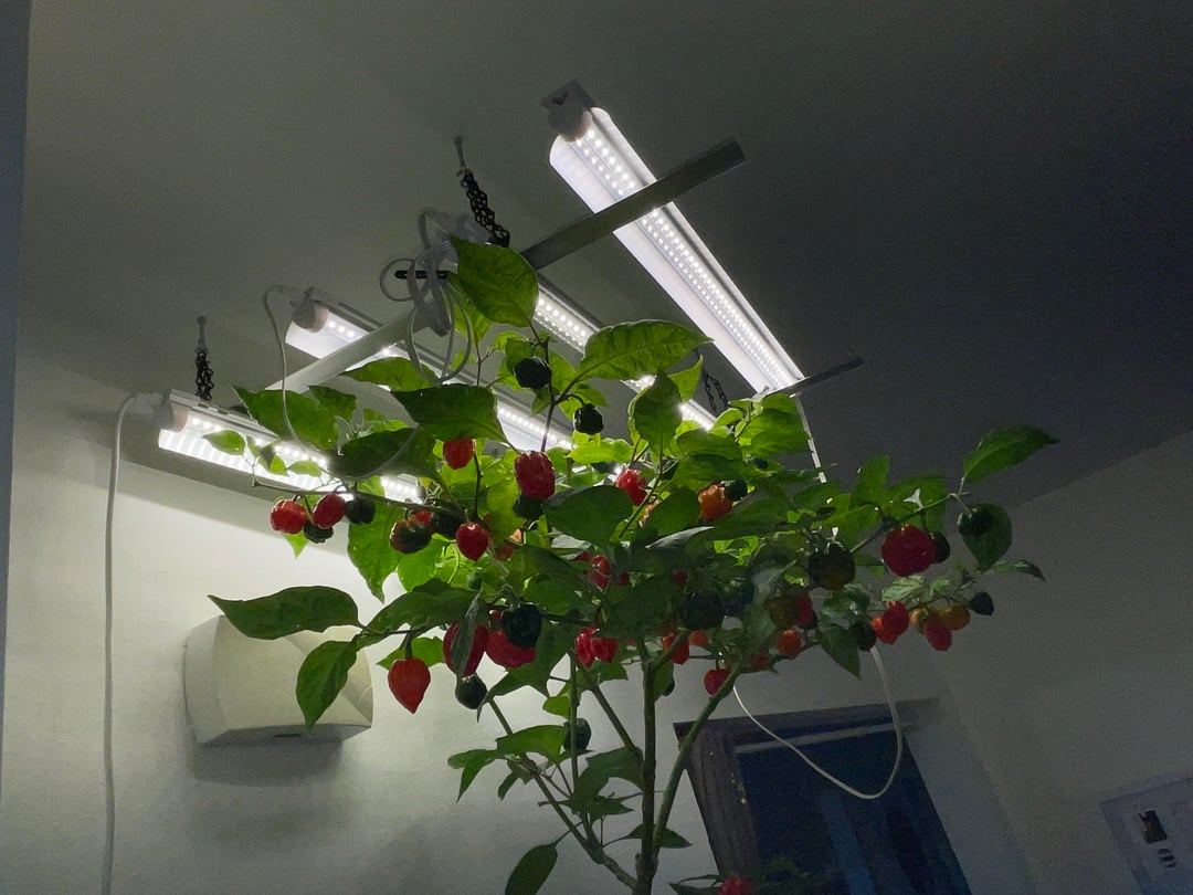 This is the result of a natural cross between a chocolate habanero and a petenero habanero. I've been growing chocolate habaneros for several years and have always saved my seeds from my garden. They have always been as supposed, brown and fairly uniform. But this time I had high expectations and a good feeling about it. The parent plants grew side by side and each had an intertwined branch. I saved the seeds from one of the chocolate habaneros, and here is the result a year later. This one grew totally inside and isolated from others peppers