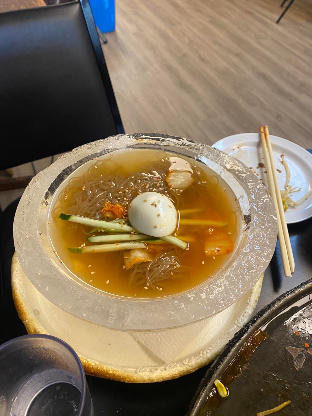 - South Korea: Tong Sam Gyup Goo Yo (Flushing) – Pork Belly and short rib bbq, cold noodles, kimchi pancakes: the cold noodles were interesting, served in an ice bowl. The food was generally solid if unremarkable. (Picture 7)