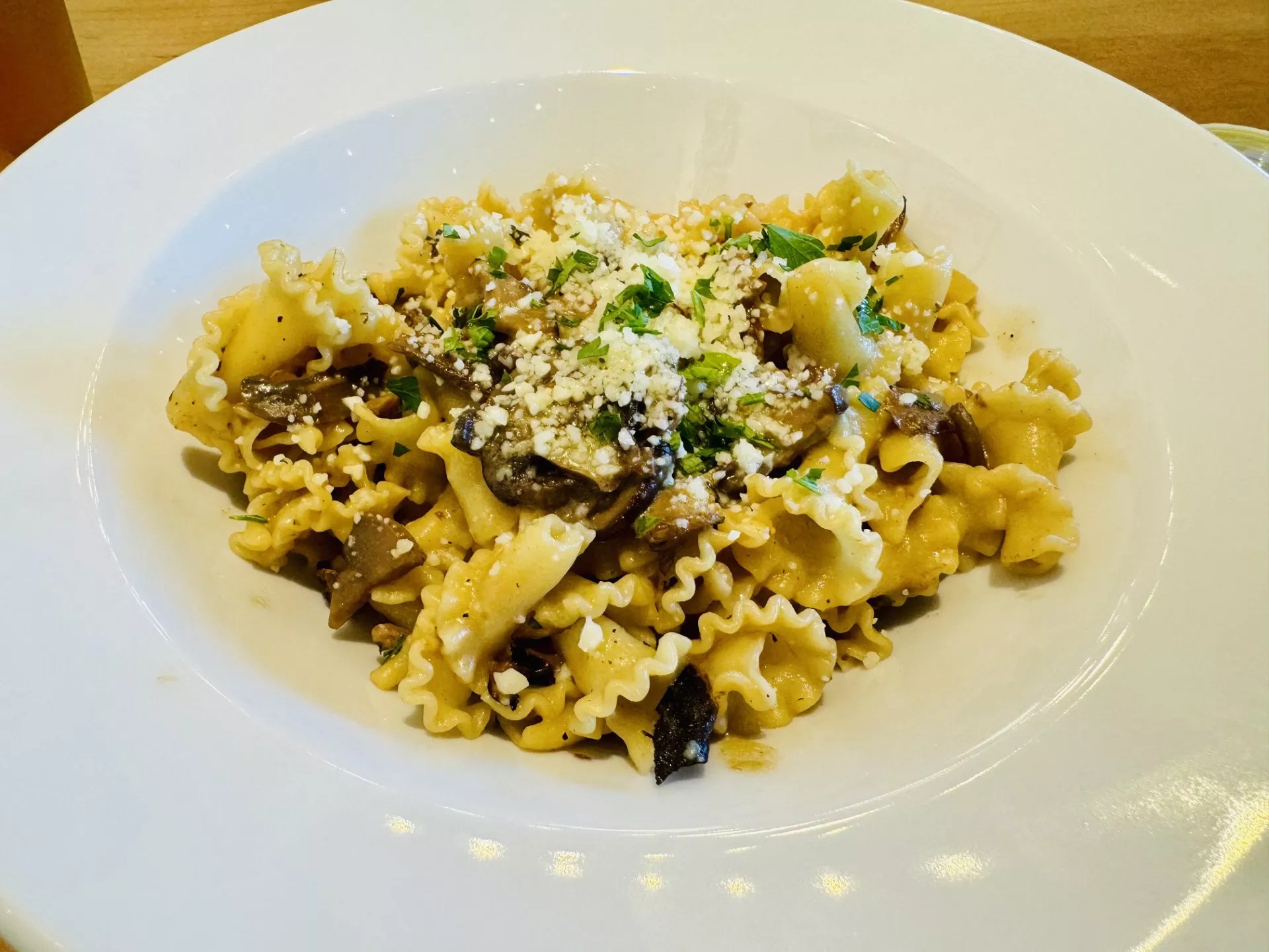 We opened with mushroom and white truffle oil over campanelle ($13.90) and added a shot of ghost chili oil for 50 cents. The campanelle was a proper al dente, and the mushrooms and white truffle oil are a match made in heaven. We highly recommend the ghost chili oil for anyone who wants to kick their pasta up a notch.