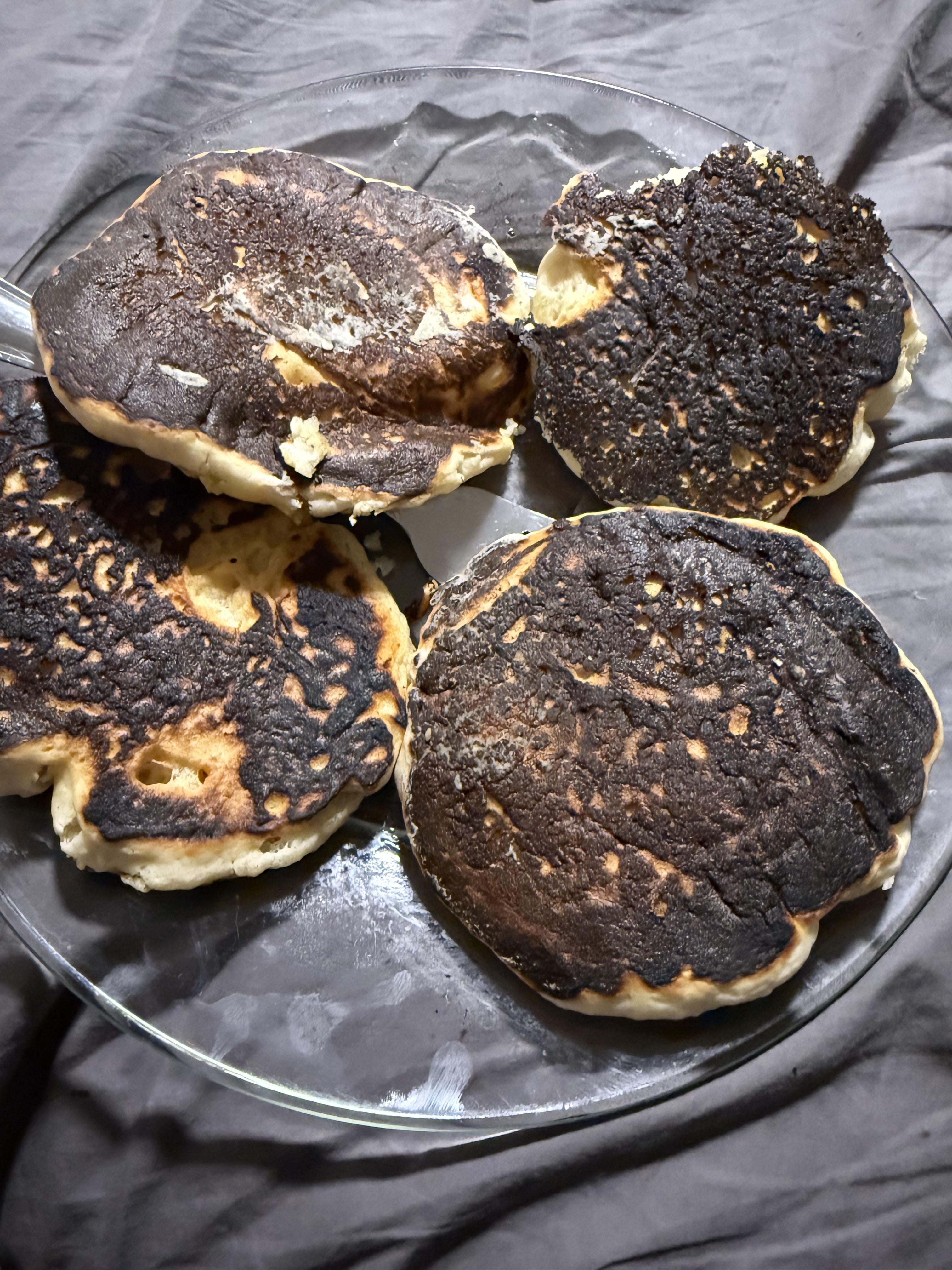 cocoahugo 5 hours ago Just soak it in maple syrup. The combined taste of burnt pancakes and sweet syrup is actually nice. At least for me. ✌🏼👍🏻