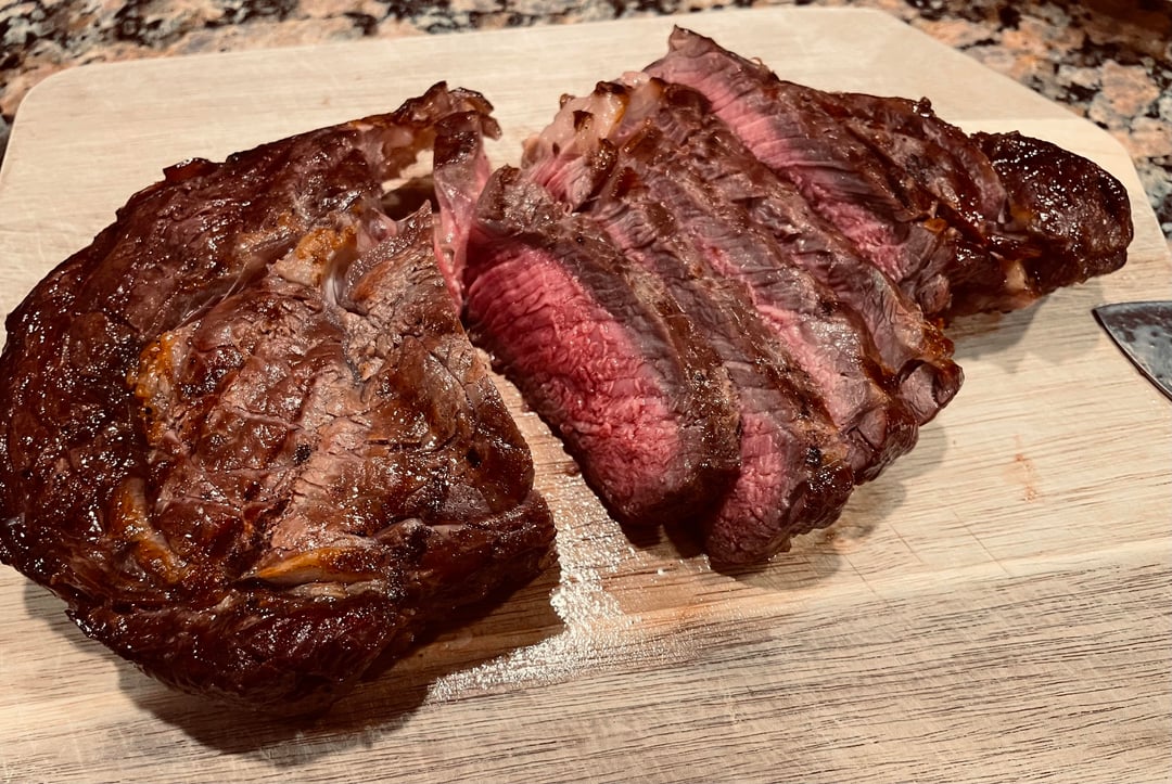 Dry brined overnight and then grilled. That's the elk on the top and the bison on the bottom. Ribeye wasn't a tomahawk.