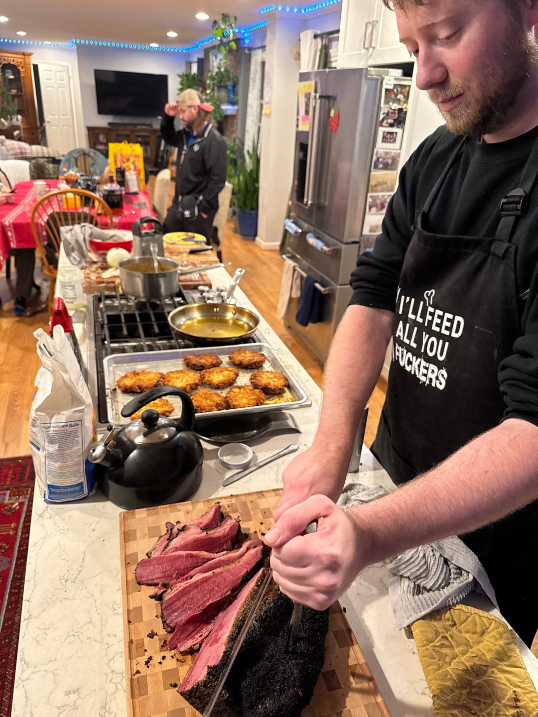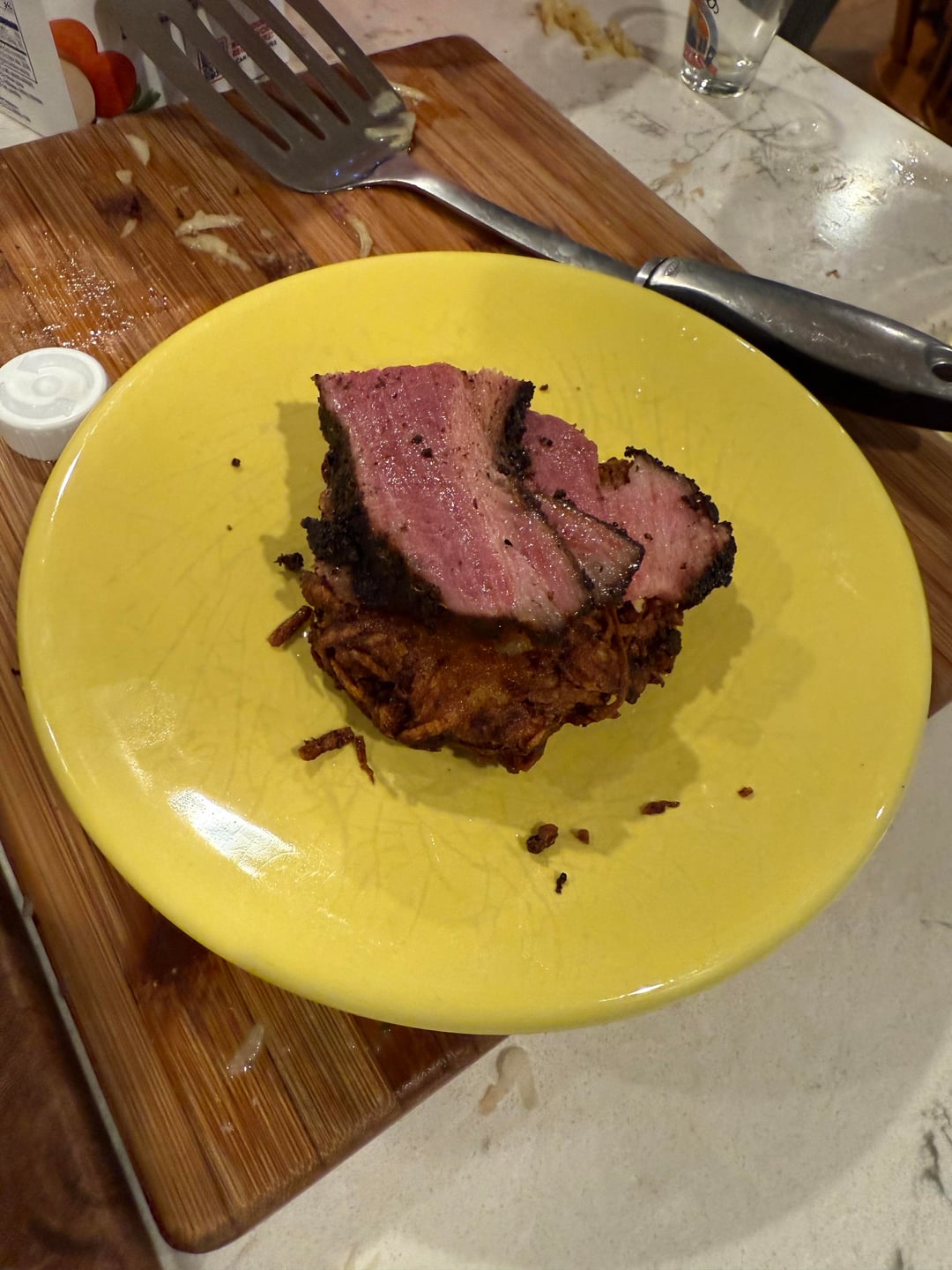 As a Jew who loves bbq. It’s great when two worlds collide and I get to make incredible Pastrami Rubins.by rwcgamer 7 Comments Creative_Web5262 8 hours ago That’s awesome dude Halihax 8 hours ago Looks incredible but why does the sauce look like alien mucus EFT_Urbanfox 8 hours ago I’m taking your apron as truth. Please DM me the address and time.Also, don’t be a tease, please share recipe. rawmeatprophet 8 hours ago BBJew ✔️ MightyKrakyn 8 hours ago I want that latke Efficient-Train2430 7 hours ago the scissors have me confused boimilk 7 hours ago That looks fucking bangin man