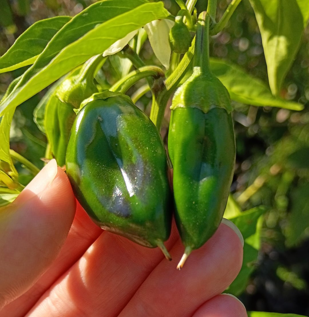 They look a lot like Habanero or Scotch Bonnets but don’t have the heat that they do.