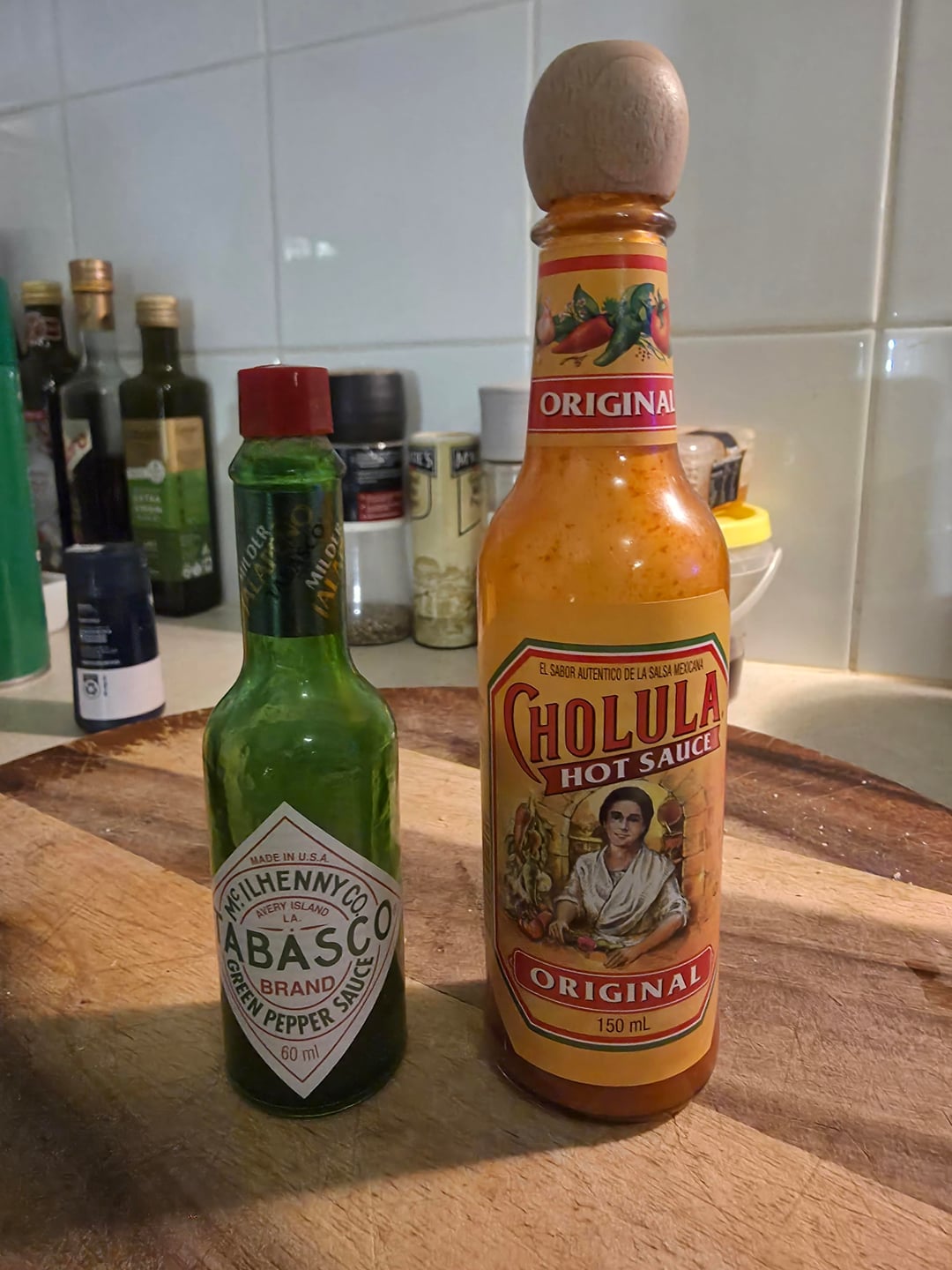 7. Usually I do my daily sauce like Crystal or Cholula when I’m cooking with it and then a sprinkle when I’m done. Then I’ll use a second sauce as a dipper or to apply per bite.