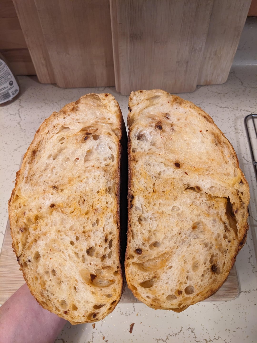 Chili crisp and Parmesan. I swear I used to just stumble on a good loaf, and that was fine, and absolutely no one in the house complained.. lately I've been absorbing information from all of you, and now that it's the season for turning the oven on, I'm practicing what you've taught me..