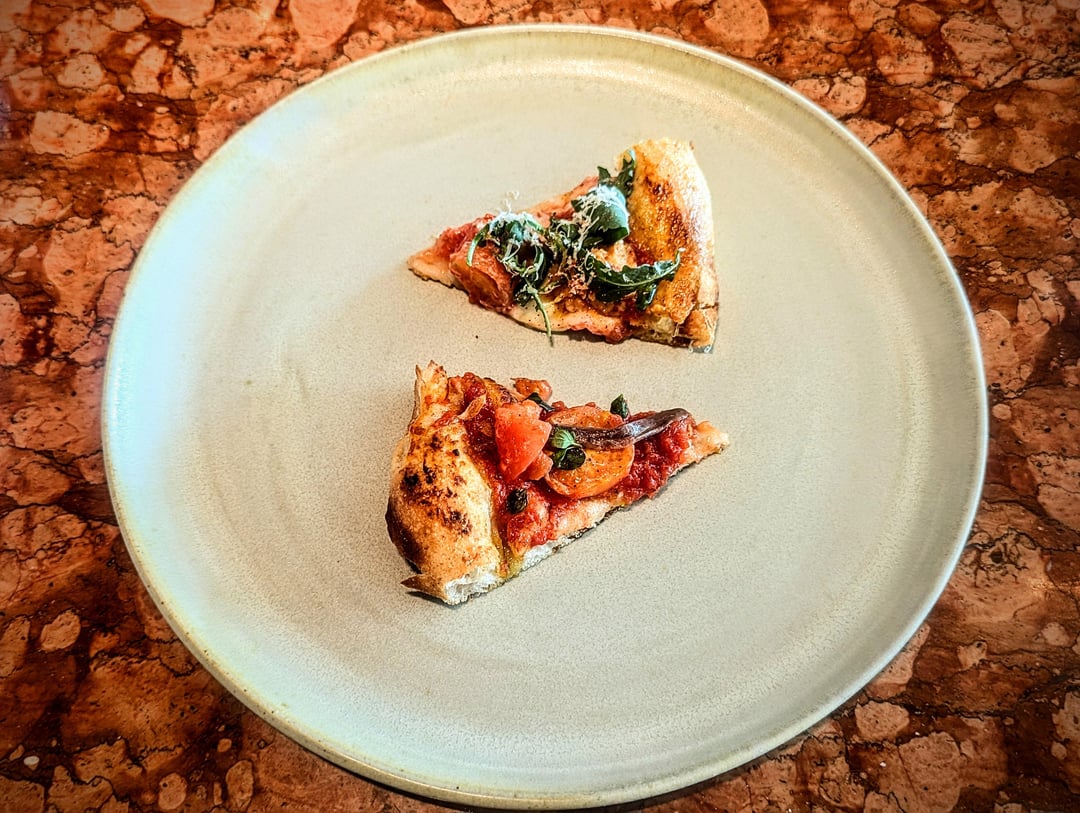 8. The Pizza Bar on 38th (4.16) – Booked through the Mandarin Oriental restaurant's website as soon as reservations opened up, I had the lunch omakase at Pizza Bar on 38th, consisting of two appetizers, six slices, and a dessert. The pizzas were almost universally excellent, with the highlights being the marinara (perhaps the best tomato-base pizza in the neapolitan tradition that I've had), and the seasonal prawn with dill and pistachios. Pricy for pizza, but this is exacting pizza making. Highly recommended!