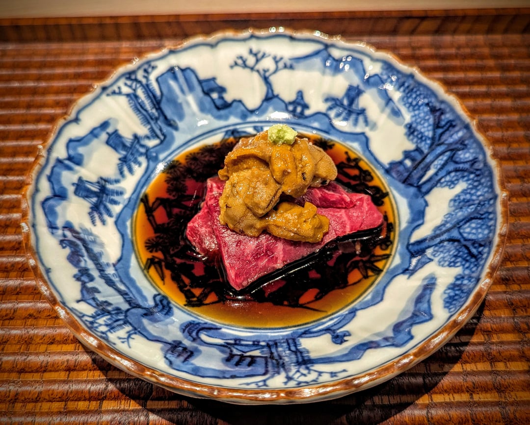 2. Ginza Kitagawa (Kaeseki cuisine; 4.35 Tabelog, Silver award. 1* Michelin) – I was surprised at just how much I enjoyed this meal, with only Sawada eclipsing it. Dishes leaned on the freshest produce, where flavours were clear and pronounced. Uni with maitake mushroom, tempura red bell pepper, deep-fried fugu, soba with dried shrimp, wagyu above A5 grade, and a huge onigiri to round out the meal made for an evening to remember. Booked through omakase.