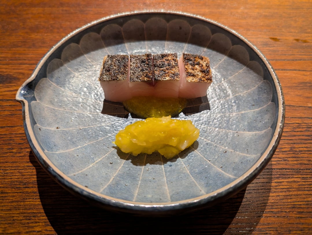 1. Sushi Mizukami (4.24, Bronze award) – An early highlight, exceptional nigiri (including kohada, chutoro, hard clam, unagi, and mantis shrimp; the shari veering toward the acidic) with some nicely-accented otsumami, such as shirako. Booked through Tableall, with Nesaki-san serving myself and two other foreigners of the eight-seat counter. Highly recommend for a traditional sushi experience.