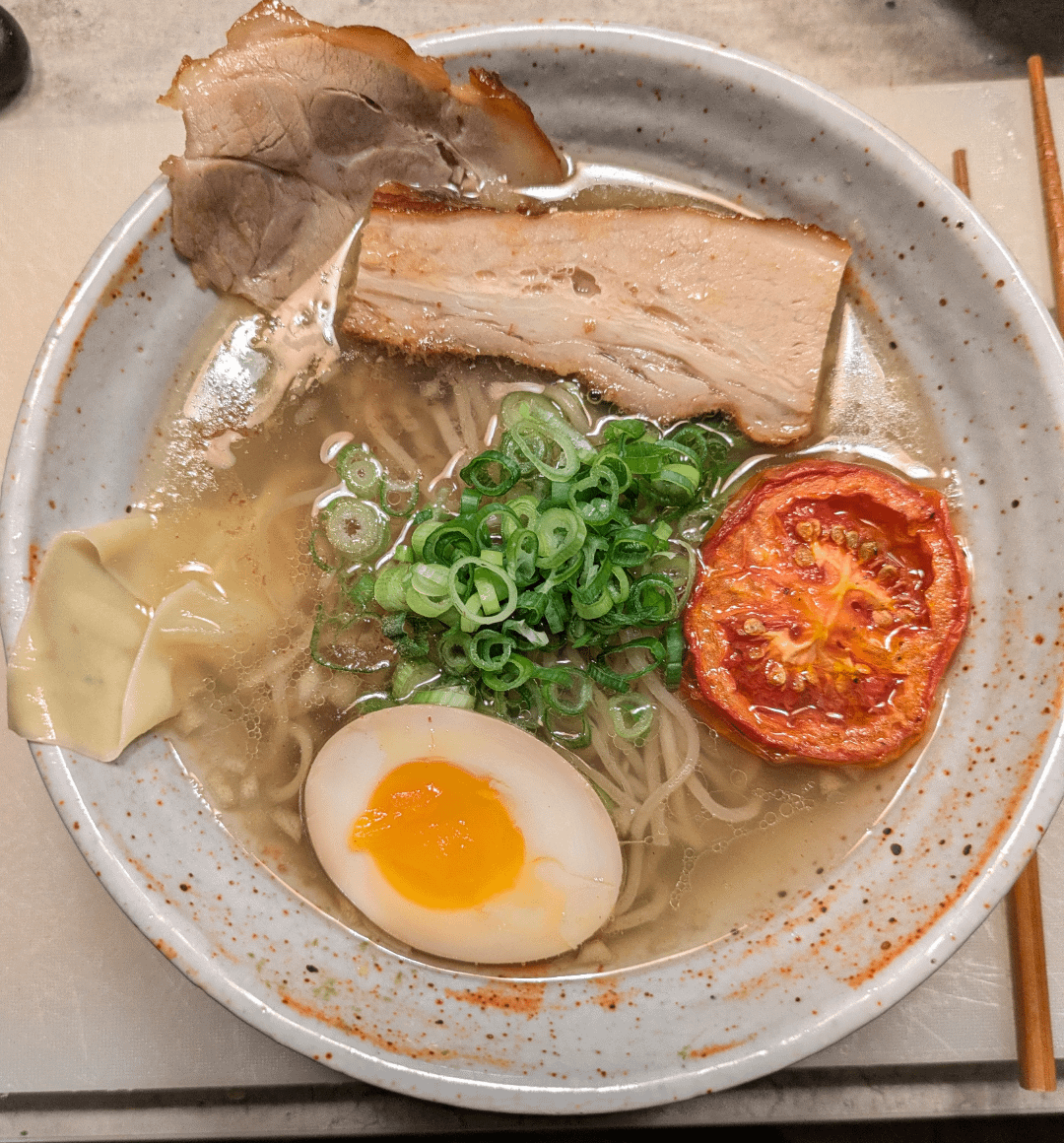 Shio pork/chicken chintan, thick pork belly, thin pork shoulder, prawn and chive wonton, confit tomato, and spring onionsby roolove 1 Comment Cultural_Physics5866 1 month ago I would eat that