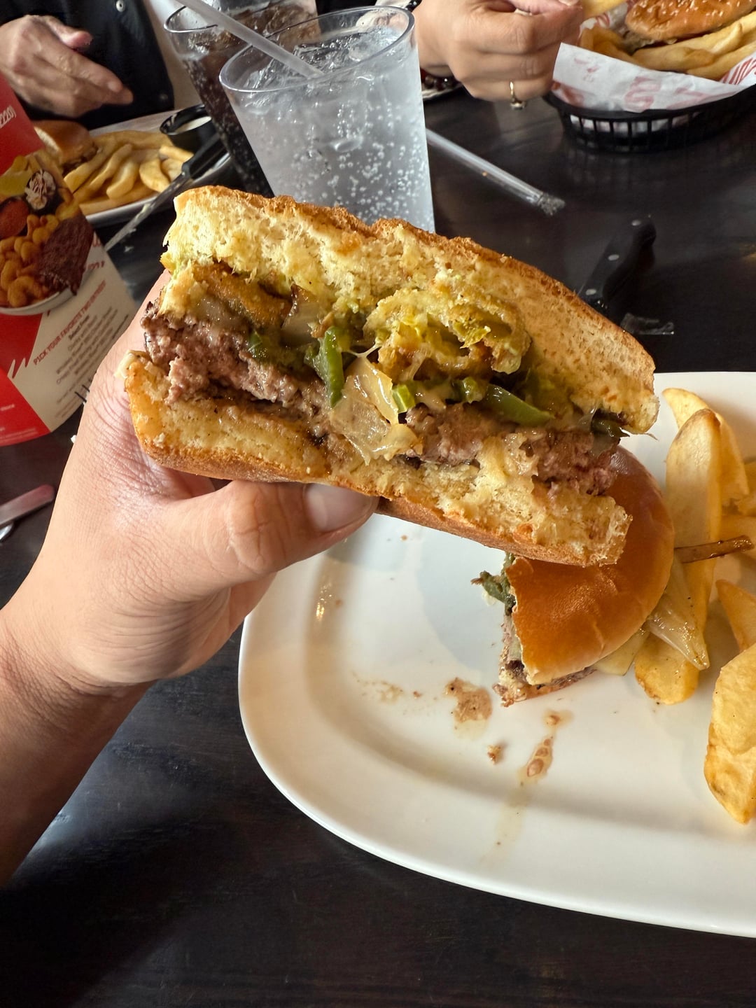 Haven’t been in a while and it hit the spot. Dad got the crispy chicken, I got the Jalapeno heat wave ( grilled onions, fried jalapeño bites, and pickled jalapenos ) and mom did the burger special for $10 ( drink, double burger, and a side )