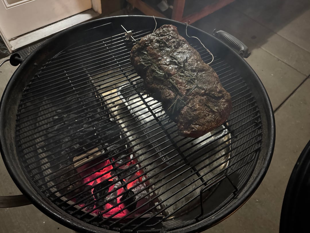 Costco has a sale this weekend for $75 off per whole package of boneless Prime Ribeye roast. Bought the smallest one I can find so that equals roughly to $14.69 per pound. 3/4 of it was a roast and 1/4 of it made 6 steaks. Used my bro n sear for low and slow for a little over 5hrs, rest for 30mins, sear for 15mins.
