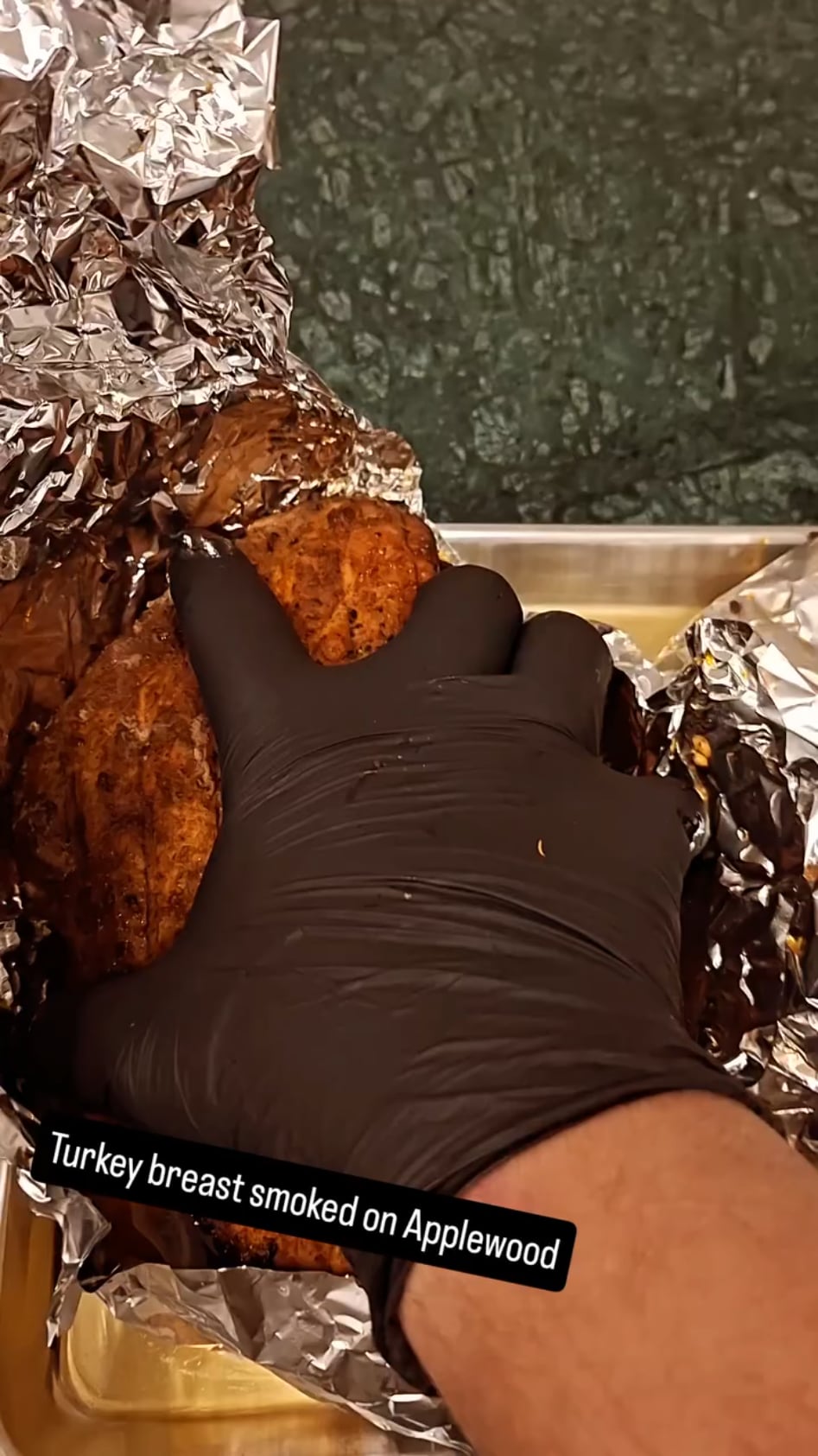 Spent about $35 for 6ish pounds of turkey breast. Did a shawarma vibe rub on it with a bunch of black peoper. Pulled from the smoker and wrapped in shmaltz and honey. Was pretty pleased with it but my vert. Smoker doesn't have a bottom vent to adjust temperature so it's pretty annoying. Hopefully upgrading soon.