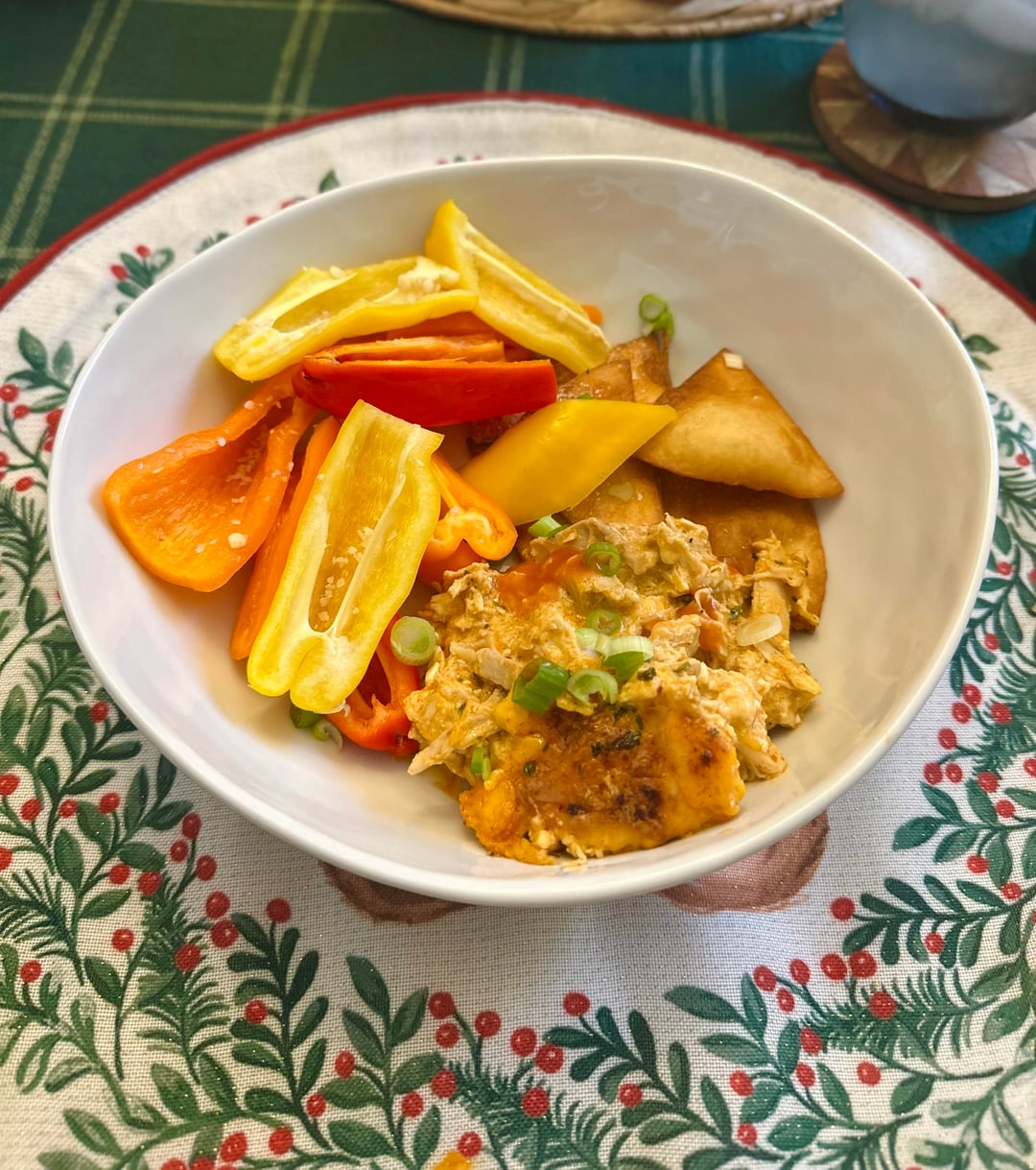 Sixth/seventh photo is buffalo chicken dip. Used the leftover buttermilk chicken and… secret ingredient cottage cheese for more protein. Surprisingly solid and we both enjoyed with peppers and homemade chips.