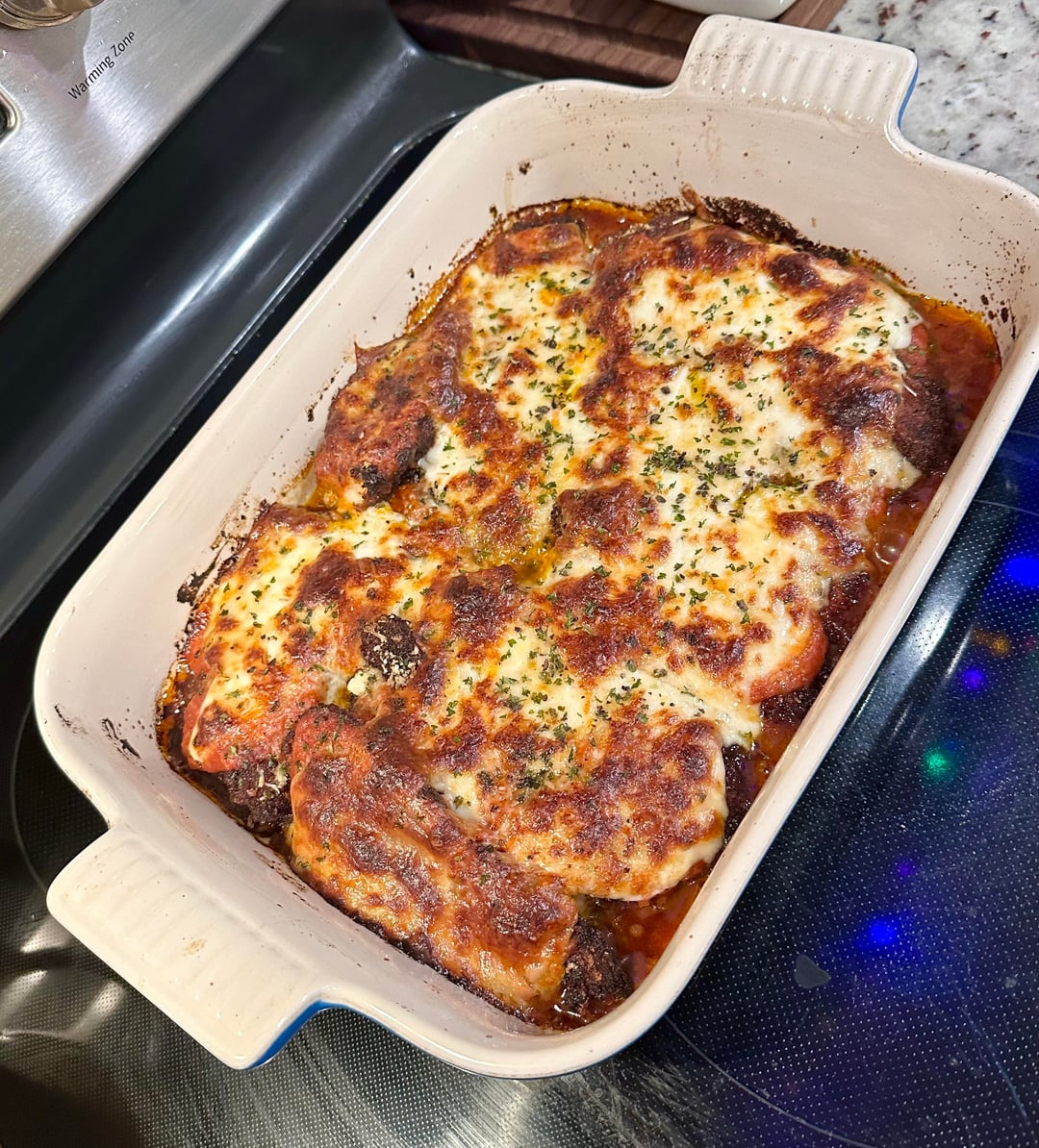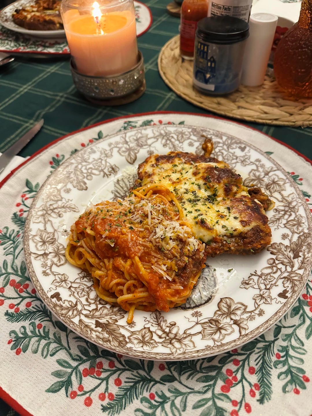 First two pictures are of a meal my fiancé requested a few nights ago. He asked for “something Italian” when he called me on his drive home from work- so I looked in my fridge and freezer and had all of the ingredients for Chicken Parm! I made a homemade sauce with crushed San Marzano tomatoes and added some spice to it too. Served with spaghetti and it was incredible.. better than the average Italian restaurant 🍝