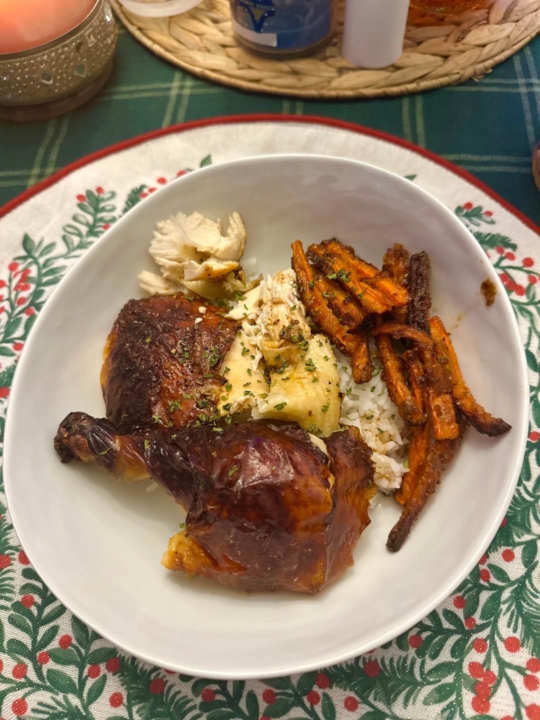 Third and fourth pictures are of a Buttermilk Roasted Chicken, served with Jasmine Rice and Carrot “fries.” I marinated the whole bird in some leftover buttermilk and a bunch of kosher salt, added black pepper and a *pinch* of dried rosemary. It was the best roast chicken we’ve ever had.. considering doing a Turkey this way for Thanksgiving since it’s generally bland and this was way better. If anyone’s done this, please give me some tips. Was also trying to clear my fridge and honestly, I’m not a fan of carrots. I decided to roast them with some garlic powder, parmesan, olive oil, and cornstarch. They got crispy and I loved them dipped in ketchup. Best carrots I ever had honestly.. tasted like sweet potato fries.