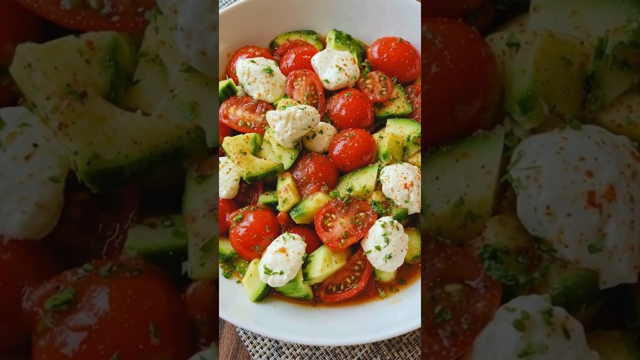 #TomatoMozzarellaSalad #CucumberSalad #SummerSalad #NoCookRecipes #EasySalad #HealthyRecipes #QuickMeals #FoodShorts