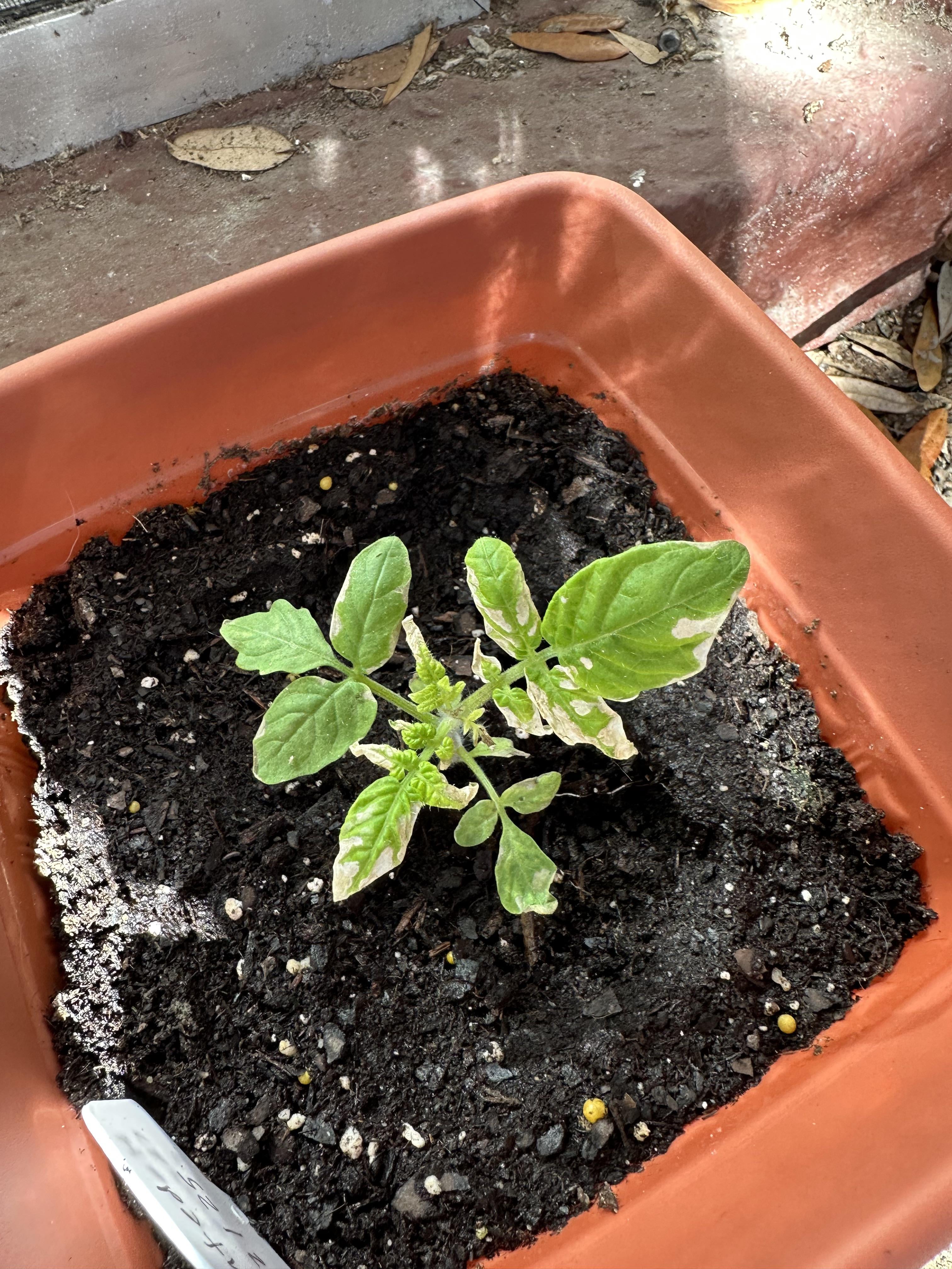 Is this seedling sunburned? Or something else? Happened after it was put back outside after a cold snap