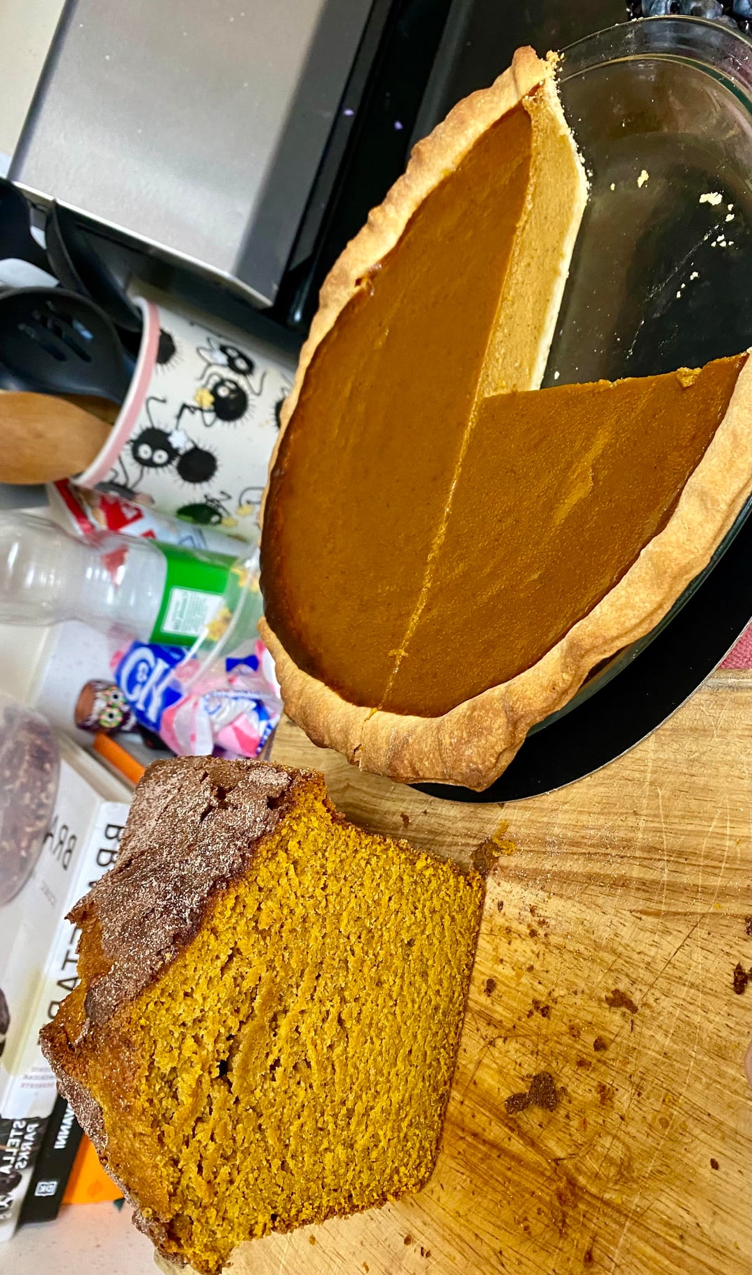 First time making pumpkin pie and a pumpkin loaf. I wasn’t able to take a picture sooner … slices were cut lol by Scarekrow_13 Dining and Cooking