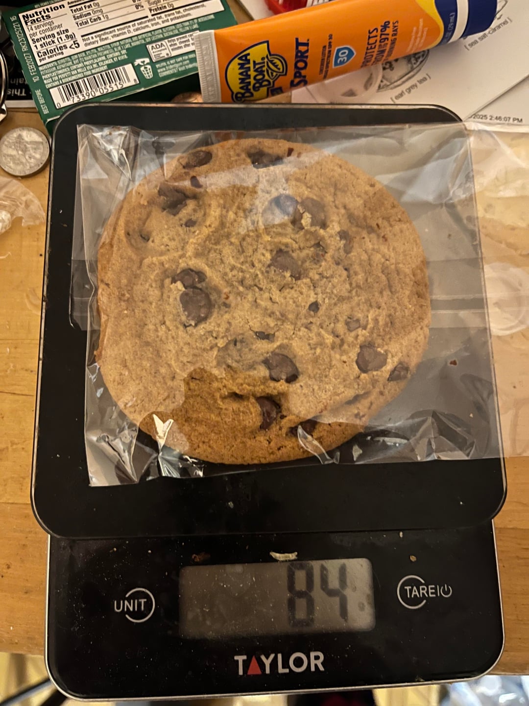 DiscombobulatedBus81 8 hours ago wasguuud stallion ! ✌️lemme drop u some perfect references for these here boss.[this brookie by David’s Cookies](https://www.webstaurantstore.com/davids-cookies-4-oz-pre-cut-brookie-brownie-cookie-bars-case/108DAV13231.html) which is suggested at ≈470 calories per 4oz/110g serving which would be ≈***475 calories for yours here***…aaaand [this choc chip cookie by Otis Spunkmeyer](https://www.webstaurantstore.com/otis-spunkmeyer-individually-wrapped-chocolate-chunk-cookie-4-oz-case/108ASP24695.html) which is suggested at ≈520 calories per 4oz/110g serving which would be ≈***400 calories for yours*** respectively! 🙂
