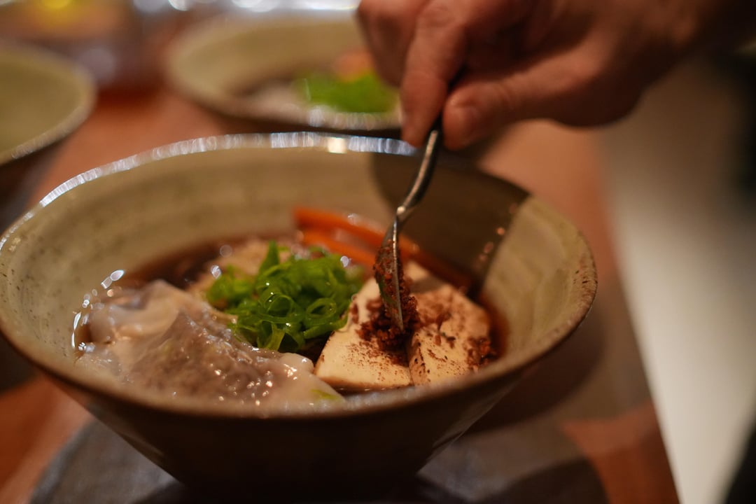 Served a three course meal at a small event space/kitchen/market in Washington DC last Friday. Would do it again in a heart beat! It was fantastic sharing my passion with others. Starter course was a daikon wafu salad, with miso shortbread cookies & frozen grapes for dessert. Shoyu Wontonmen for the ramen.