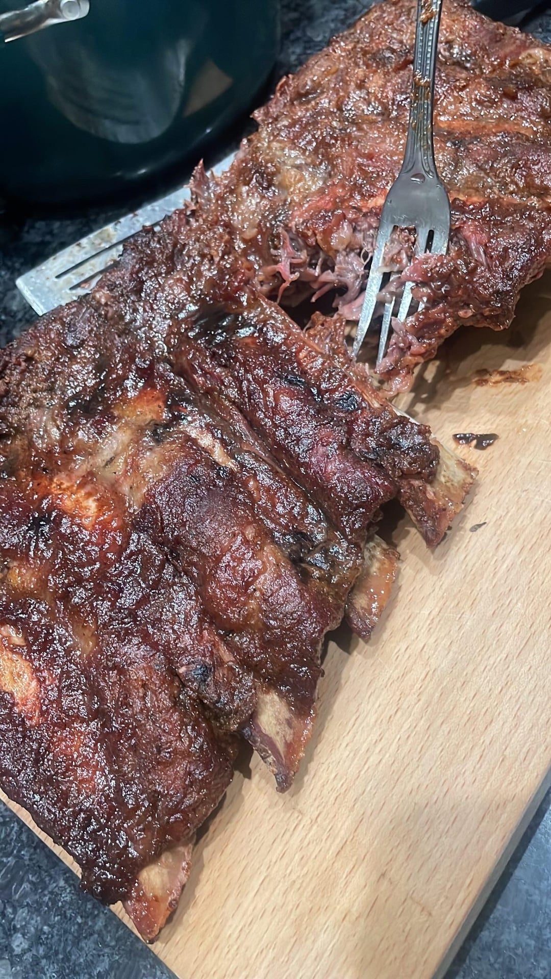 I usually bake them in the oven but today I tried them on a charcoal grill . Loved the turnoutby EnvironmentalTie1128 5 Comments Outrageous_Ad4252 11 hours ago Wow! Nice. Can you share prep/cooking? Thanks IndependenceDizzy891 11 hours ago Well well well!! First time and first trophy OUT OF THE PARK. Invites are accepted. markbroncco 10 hours ago The bark looks awesome tbh. What kind of rub is that OP? Remote-Koala1215 9 hours ago Dam, can I come over for ribs next time TryBananna4Scale 8 hours ago Those look perfect!