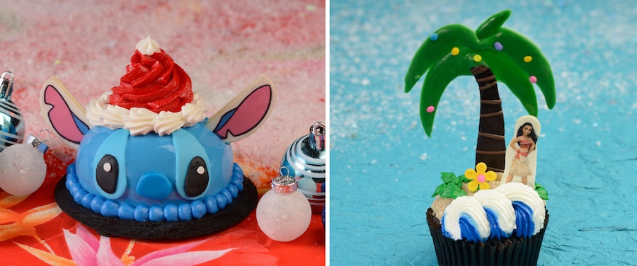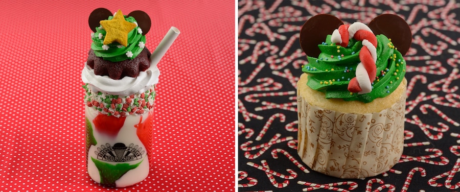 cupcake and vanilla buttercream with chocolate Mickey ears and holiday décor (New)
