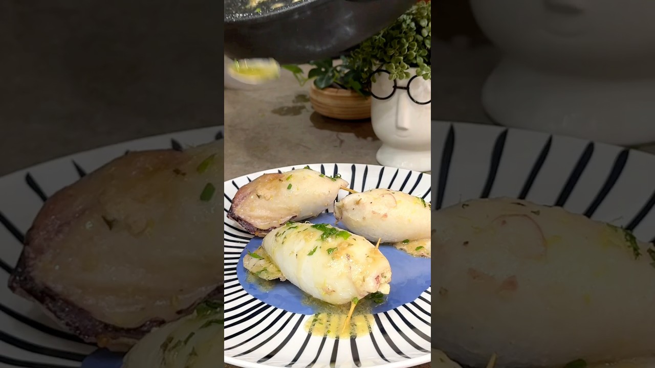 Vi innamorerete di questi calamari ripieni in bianco. Fateli con me, sono facilissimi. Iniziamo. E allora, dopo aver pulito e sciacquato i calamari, taglio a pezzetti i tentacoli e poi in una padellina metto l’olio extravergine, l’aglio, le acciughine che faccio sciogliere nell’olio. Ora metto i tentacoli e li faccio cuocere per un paio di minuti a fianno arrivate. Ora tolgo l’aglio, metto la mollica di pane, un po’ di prezzemolo, poi do una bella mescolata, alzo al massimo e sfumo con il vino bianco, lascio a fiamma alta e mentre il vino evapora schiaccio un pochettino il pane. Ok, ora metto il composto in una ciotolina e lo lascio intiepidire. Intiepidito metto il parmigiano, l’uovo, un po’ di pepe e amalgamo bene bene. Ora riempio le sacche dei calamari fino a trearti. Ora chiudo con uno stuzzicadenti, poi metto l’olio in padella, metto i calamari, un pizico di sale e faccio cuocere un paio di minuti per lato in maniera tale da far fare la crosticina. Ok, ora sfumo col vino bianco, lascio a fiamma alta e faccio evaporare. Evaporato il vino, aggiungo un mezzo bicchiere d’acqua, copro e faccio cuocere a fiamma media per circa 20 minuti. A proposito, se resta un po’ di ripieno, mettetelo in padella, non lo buttate via. 5-6 minuti a fiamma alta e vedrete che bontΓ . Perfetto. Ora spengo grattugiata di buccia di limone, prezzemolo fresco e vado a servire. Mamma mia!