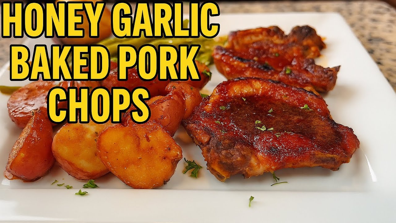 Hey guys, welcome back to my channel. Mikey’s in the kitchen. Thank you for subscribing to my channel. I really appreciate it. And if you’re new, first time watching, please hit that subscribe button. Now, today I want to show you guys I made this honey garlic baked pork chop dinner. Real simple and easy. You can see I rub my pork chops down with some olive oil after I patted them dry. Season them up with some salt. And we’re going to add some pepper. And we’re going to do this on both sides. We’re going to add some garlic powder, some onion powder, some uh pepper raka. We’re going to rub that in real good. Now, we’re going to make our glaze. Going to add butter. We add some minced garlic. Then we’re going to come in with some soy sauce. Then we going to add a little lemon juice. We’re going to add some honey. And we’re going to whisk this up real good. And we going to reduce our heat to a simmer and let this tighten up. And then we going to set it to the side. Now, next up, we going to work on our pork chops. Going to add a little olive oil to hot skillet. Now, we’re going to brown our pork chops on both sides. Going to cook them for about uh two to three minutes on each side. And once they’re done, we’re going to take them out and set them to the side. Okay, we got our pork chops brown. Now we’re going to set them on this sheet pan. Now we’re going to work on our vegetables. We’re going to slice some red uh potatoes in half and then we’re going to season them up. Real simple seasoning on them, guys. Of course, you can add your own seasoning. We’re going to add a little olive oil. And we’re going to add some salt and some pepper. And this going to come in a slow motion here, guys. I like that slow motion. And we’re going to toss these up. And we going to sit these to the side. And then we going to work on our green beans. We can do the same thing. Now, as far as these green beans are concerned, uh you can snap the beans in half. Uh I didn’t do that, but you can. It would make it a lot easier. um you know for eating. And we’re just going to season it up the same way. Salt and pepper. Add that olive oil. And we going to toss it up real good. Now, we’re going to brush this uh sauce uh over our pork chop. And we’re also going to add some to our potatoes, too, as well. And we’re going to bake this for 25 minutes at 400°. Please. Now, the green beans wasn’t done enough for me, so I covered and put it in put them back in the oven for another five minutes cuz I wanted those green beans uh get a little bit more done. And then uh we took them out. Now I’m going to go ahead on and plate them up. We’re going to dazzle some of that more of that sauce on top of the pork chops and uh add a little blueberry muffin. There you go, guys. Honey garlic pork chop dinner. See you in the next video. Thanks for watching.