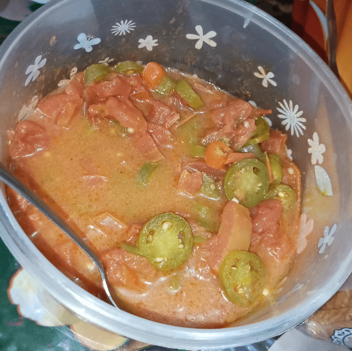 Delicious serrano and tomatoe sauce my Mother in law did for sunday dinner, it's mildly spicy but have some surprise pieces.